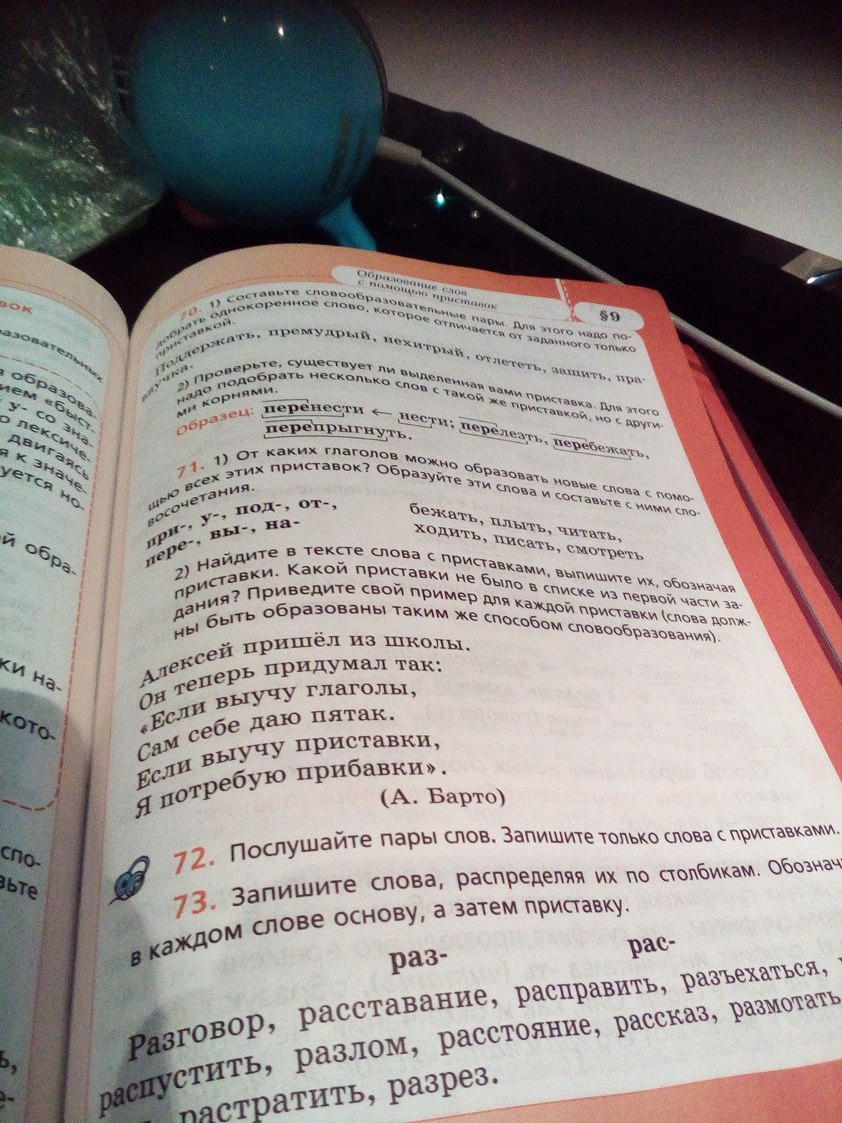 Прибежать до финиша,приплыть к берегу,приходить домой,уплыть от берега,уходить из школы,посмотреть на небо и т.д.