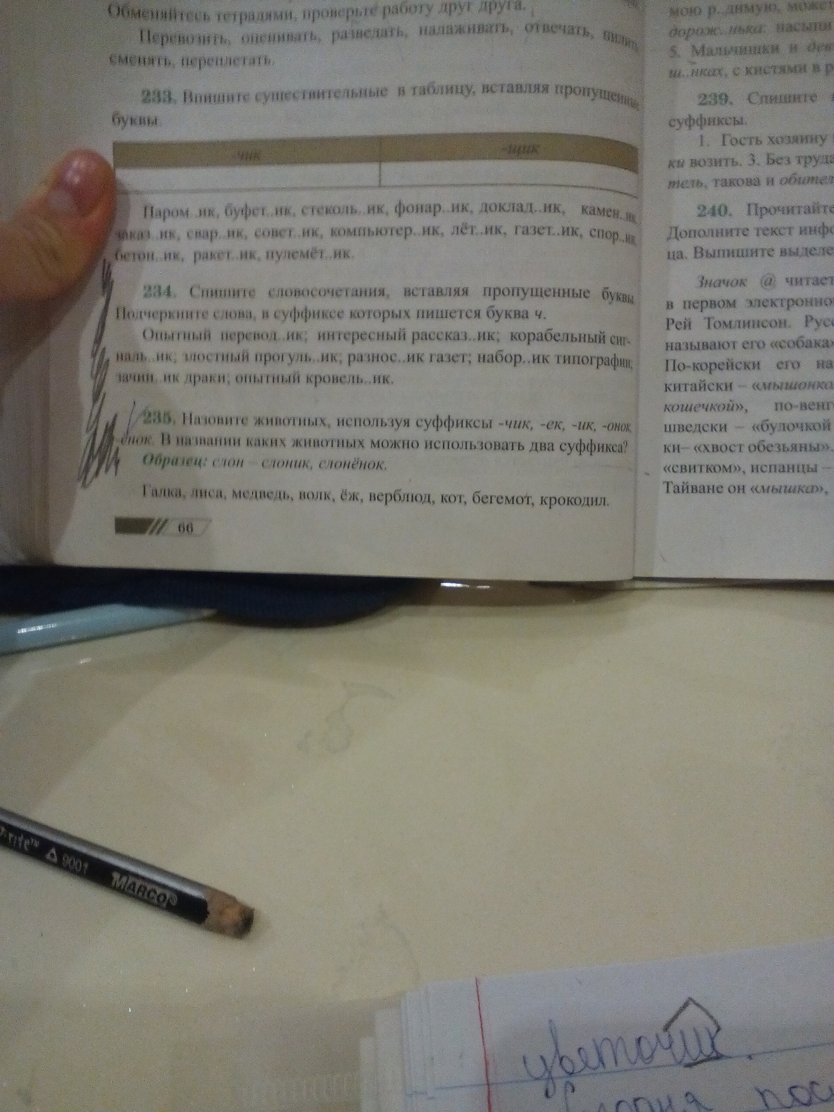 Галчё(о)нок(?), лисёнок, медвежонок, волчонок, ёжик, верблюжё(о)нок(?), котёнок, бегемотик, крокодилёнок.