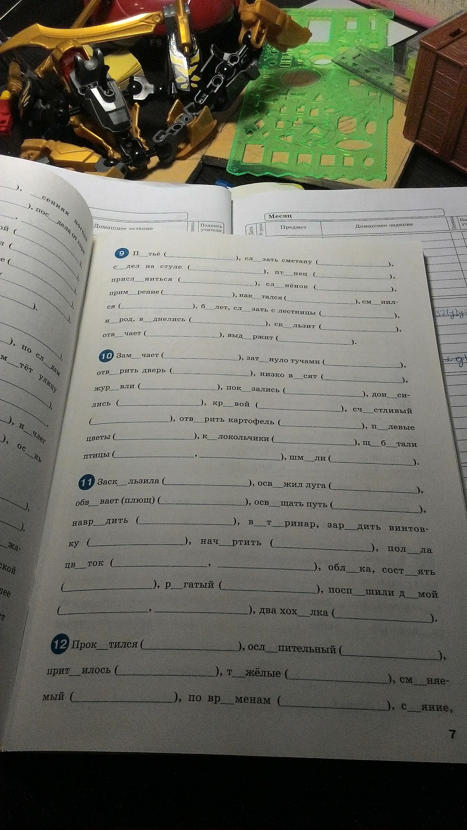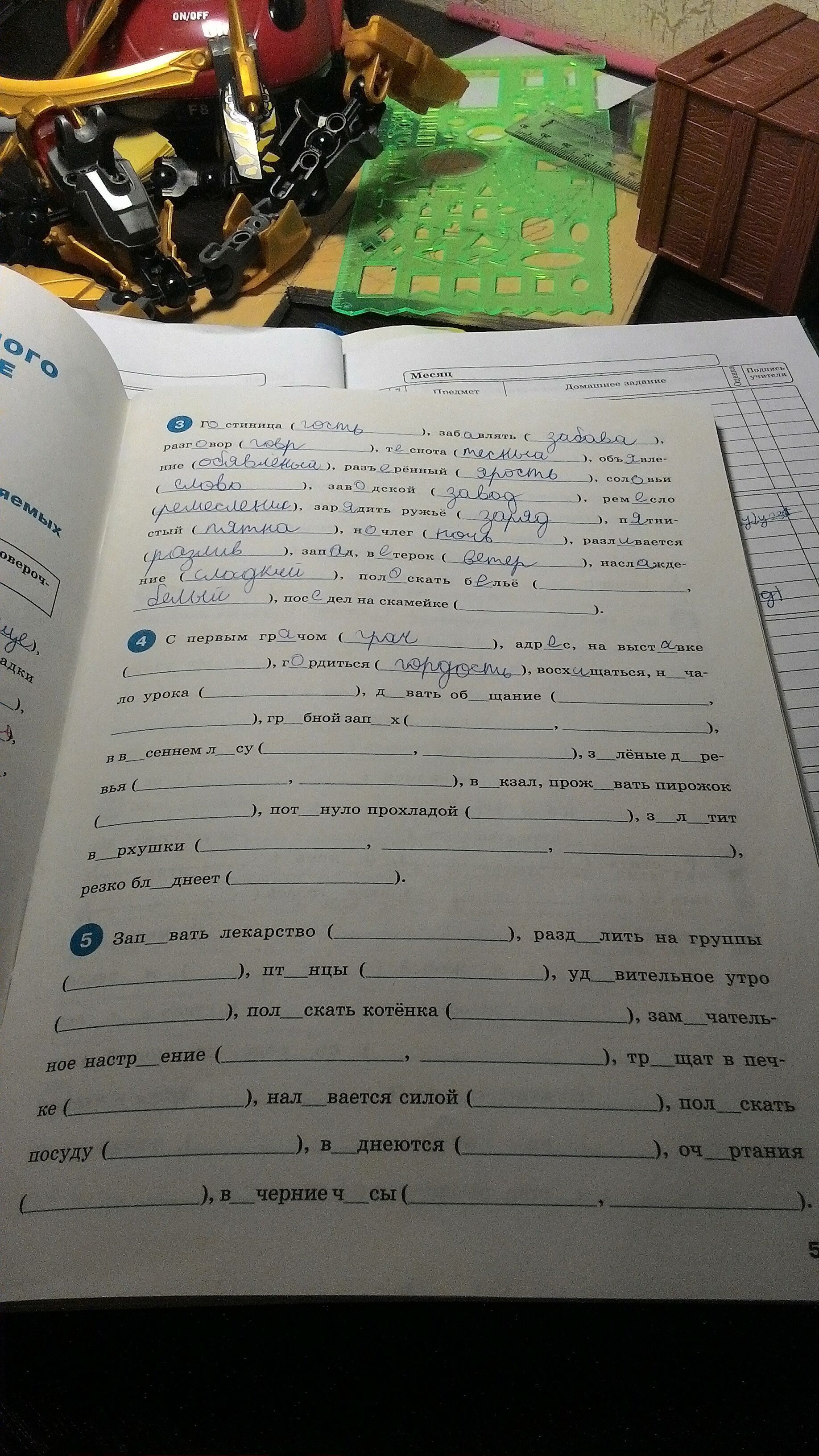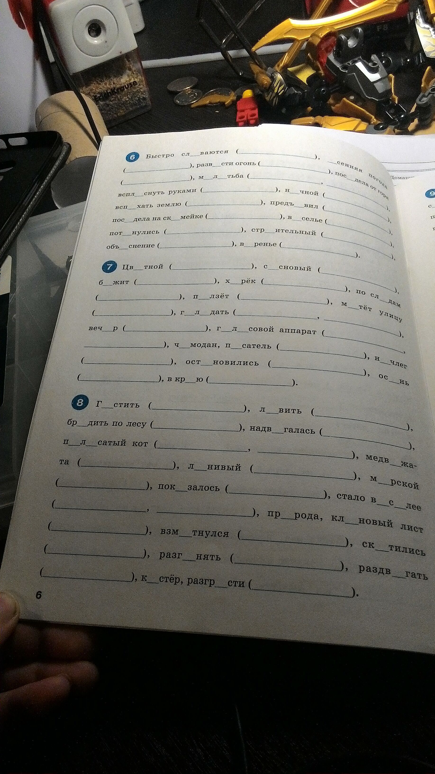 5)запивать лекарство,разделить на группы,птенцы,удивительное утро,полоскать котёнка,замечательное настроение,трещат в печке,наливается силой,полоскать посуду, виднеется,очертания,вечерние часы.