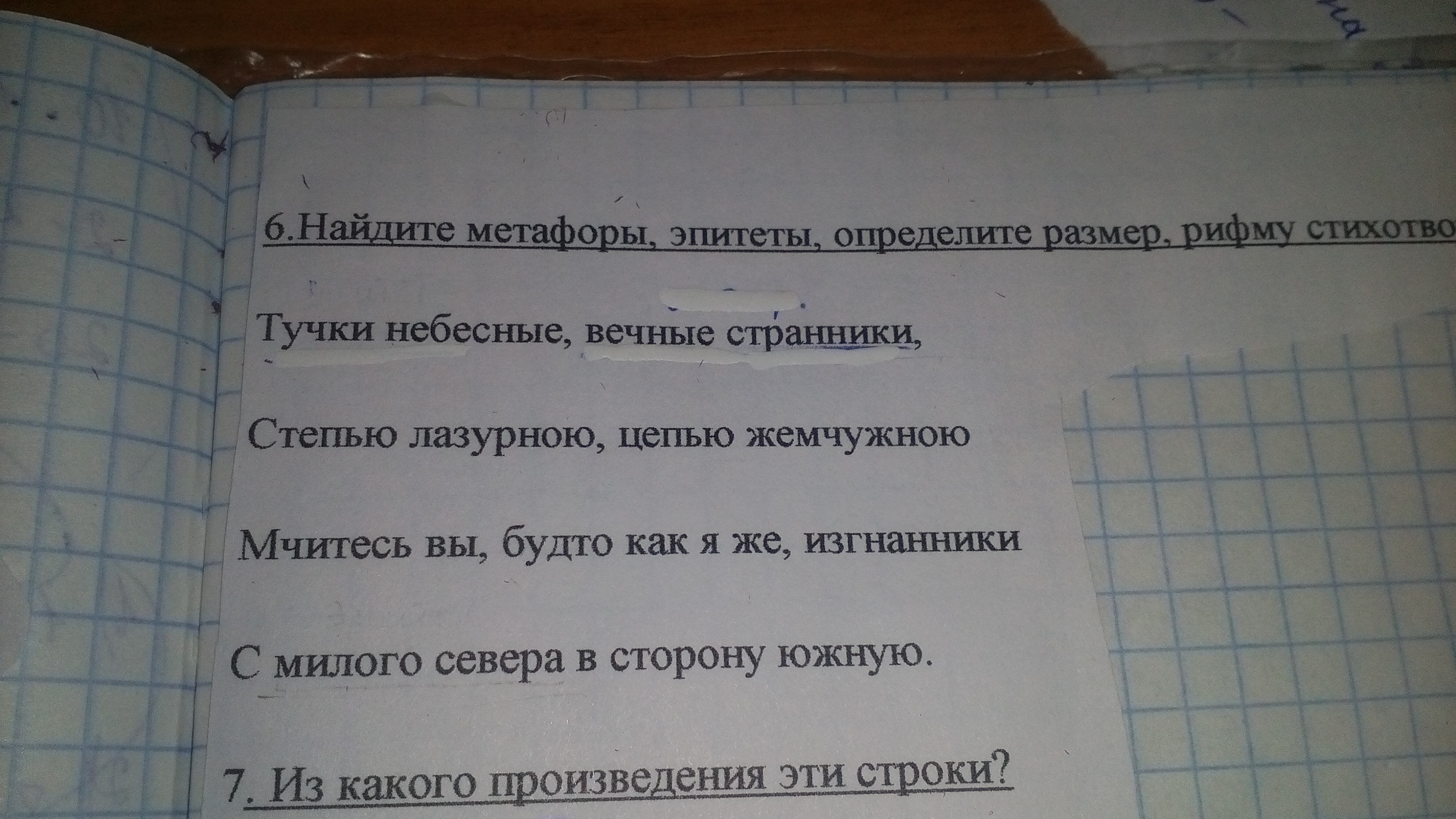 Метафора: "тучки небесные, вечные странники" (скрытое сравнение)