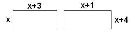Во втором случае ширина = x+4, длина = x+3-2 = x+1. Площадь = y+8