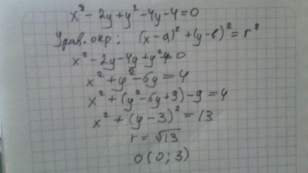 свести это x^2-2y+у^2-4у-4=0 уравнение к общему виду окружности.