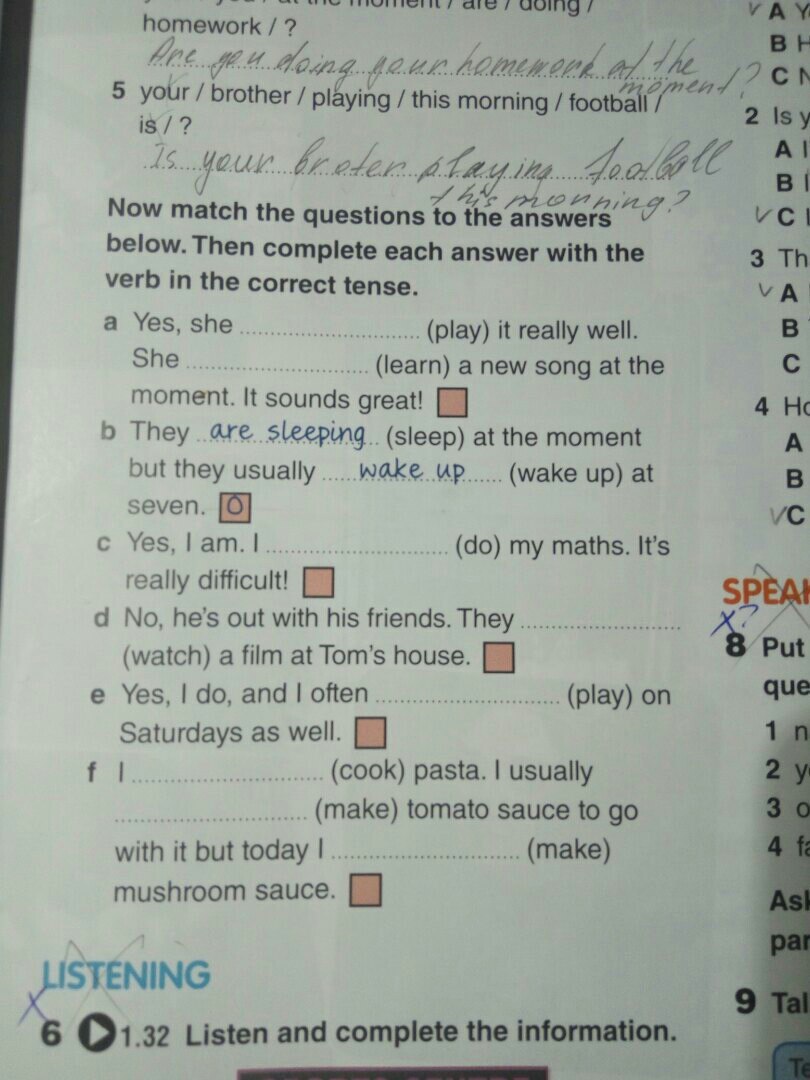 plays, she's learning, i'm doing,they are watching