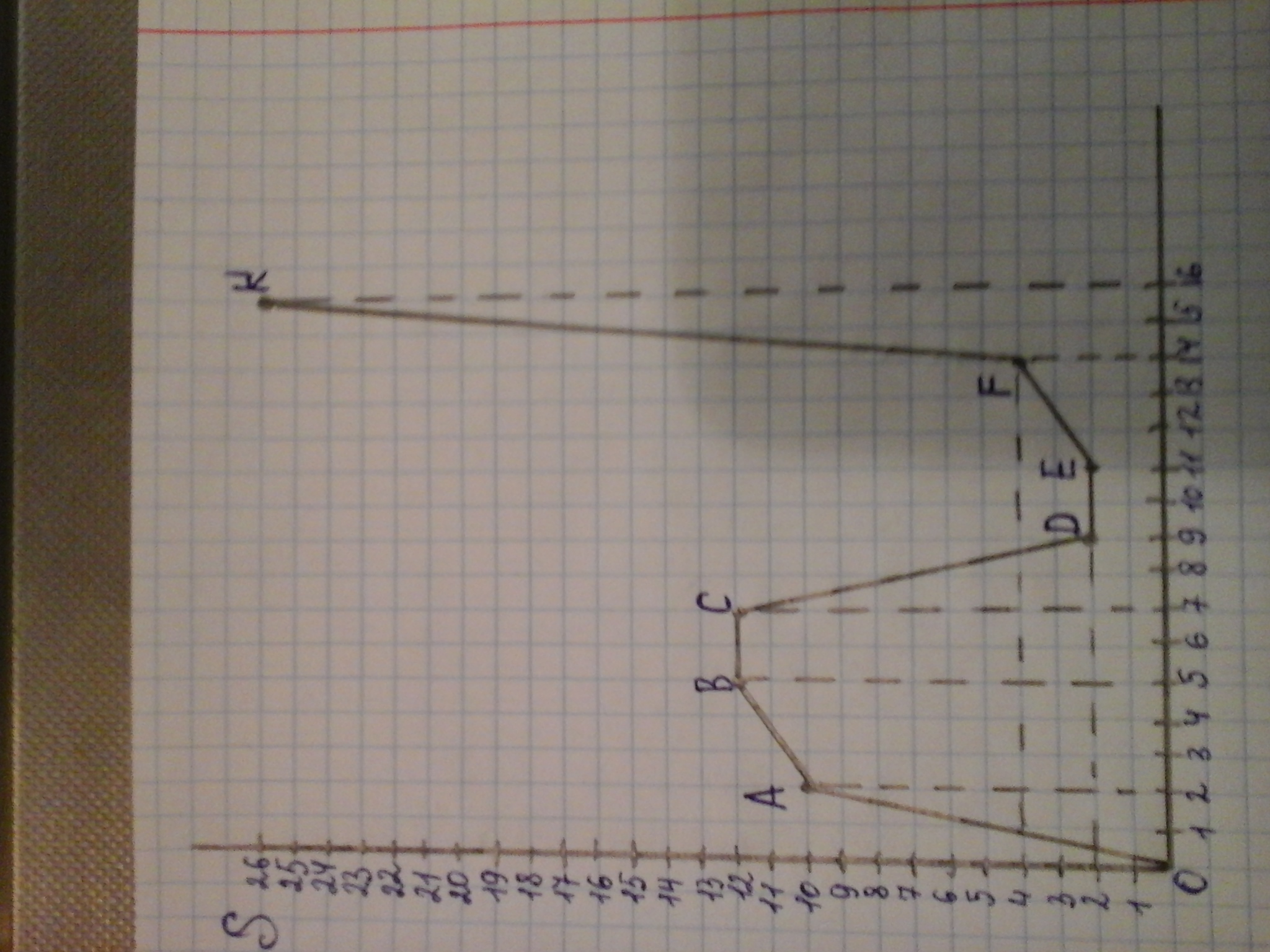 Автомобиль за первые 2 часа проехал 10 км. За последующие 3 часа проехал ещё 2 км, после чего 2 часа стоял не двигаясь, а затем, двигаясь в противоположном направлении 2 часа проехал 10 км, после чего снова 2 часа стоял не двигаясь. затем снова тронулся с места в первоначальном направлении и преодолел 2 км за 3 часа, после чего за 2 часа преодолел ещё 16 км.