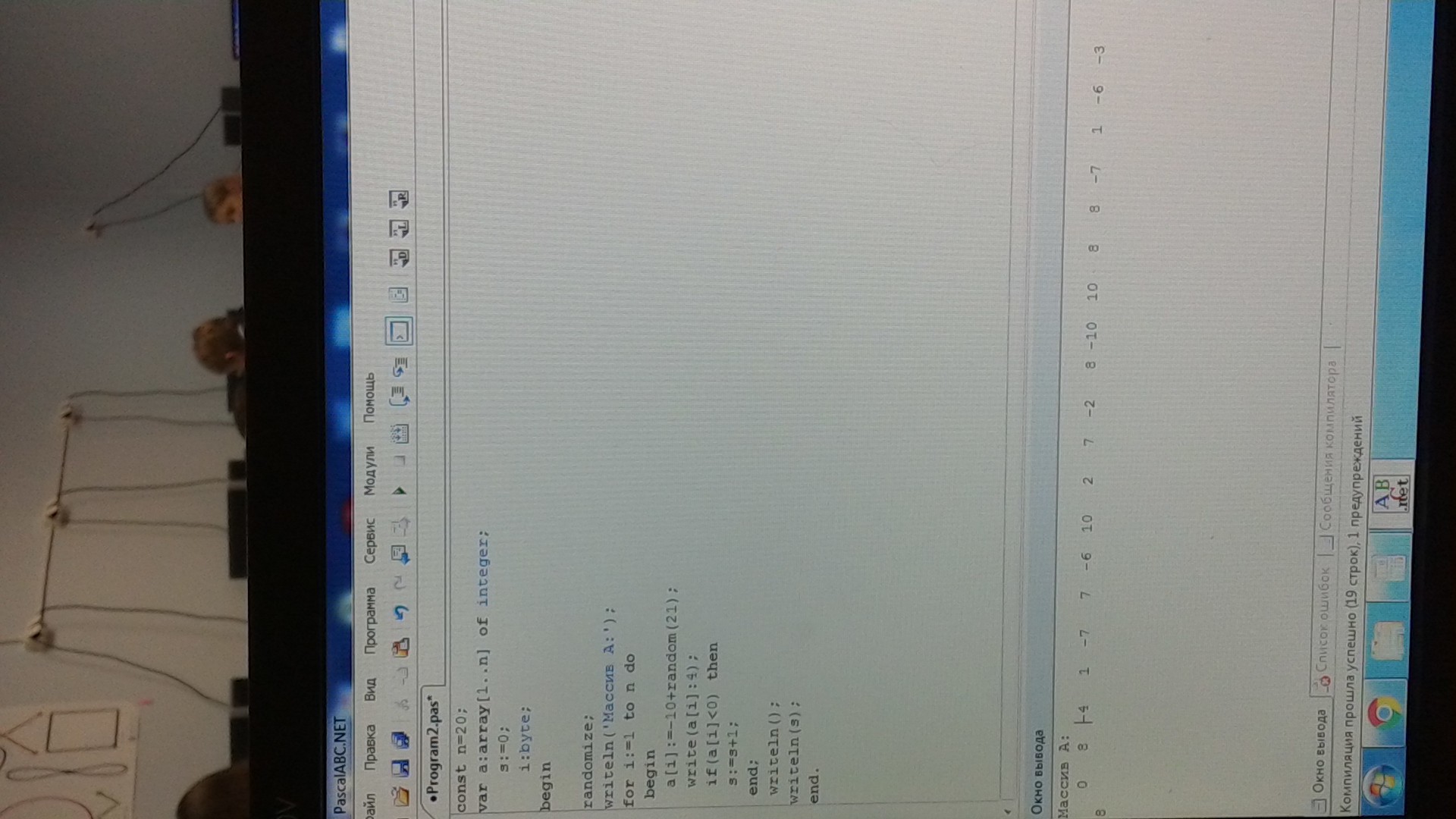 В одномерном массиве из 20 элементов заполненном случайными числами из интервала [-10,10] определить количество отрицательных элементов