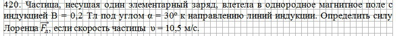 F=q*B*v*sinα=1.6*10^-19*0.2*10.5*0.5=1.68*10^-19 H