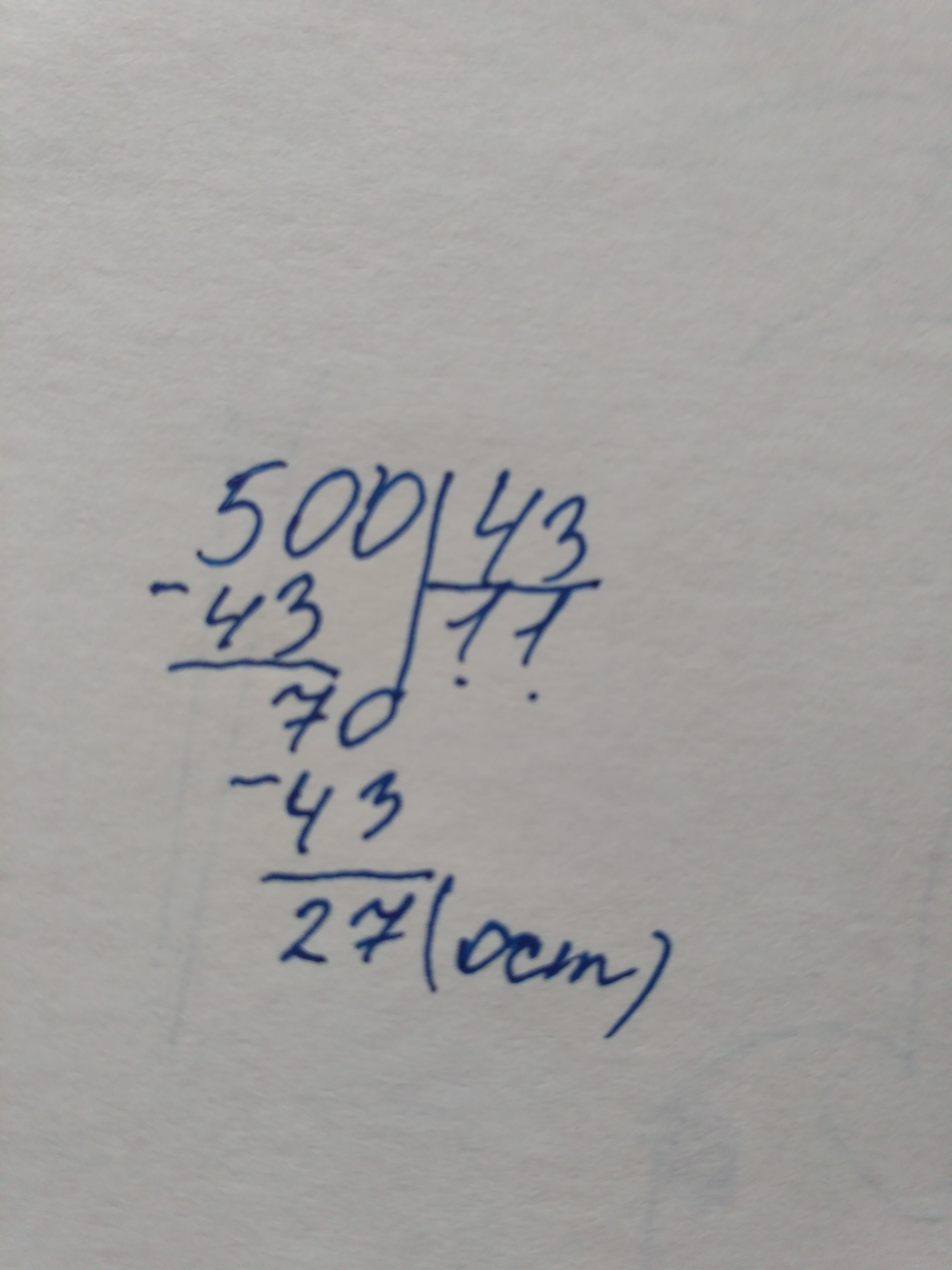 500:43=11 ответ 27 остаток