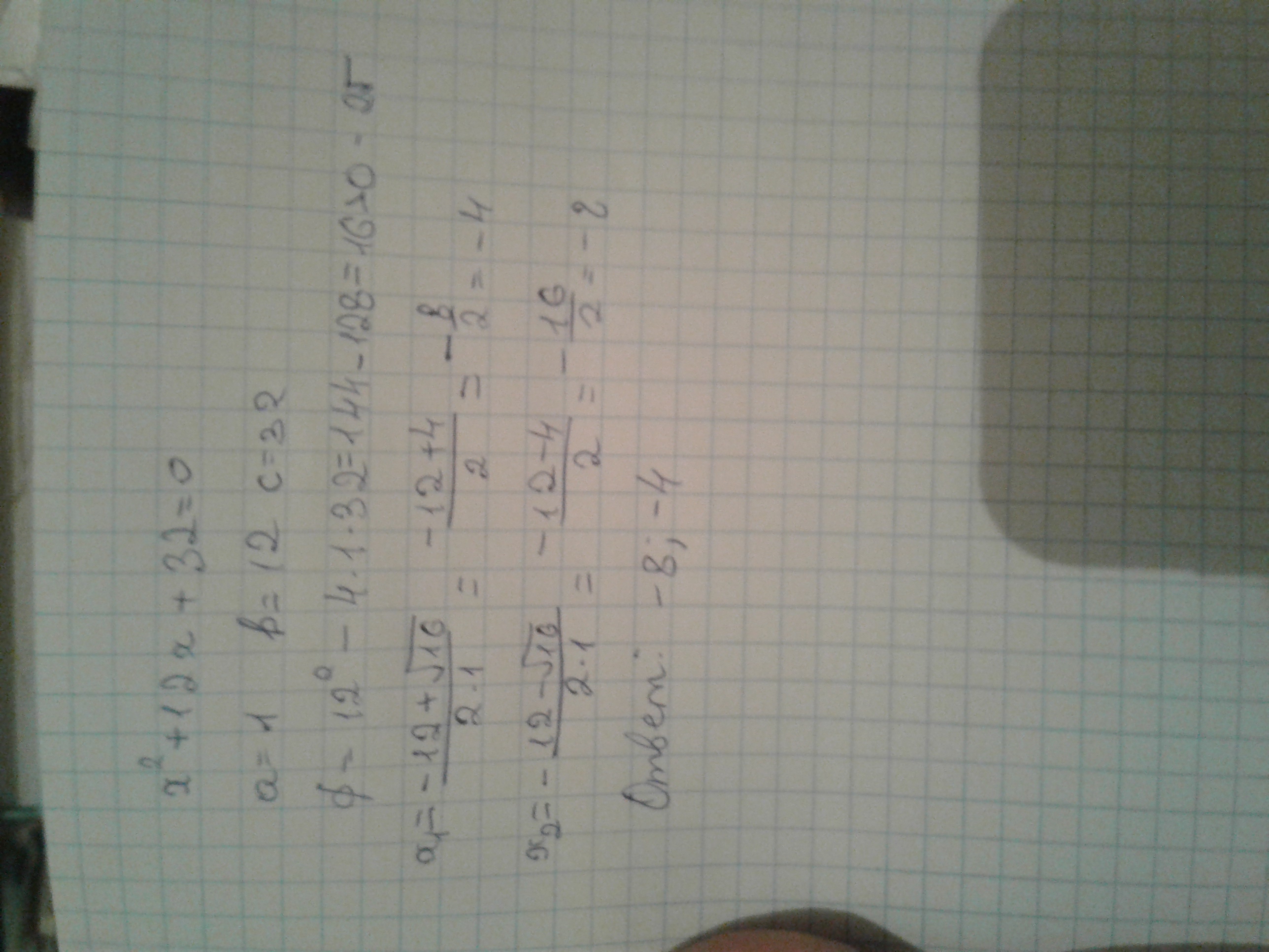 Х2=(-12-4)/2=-8
