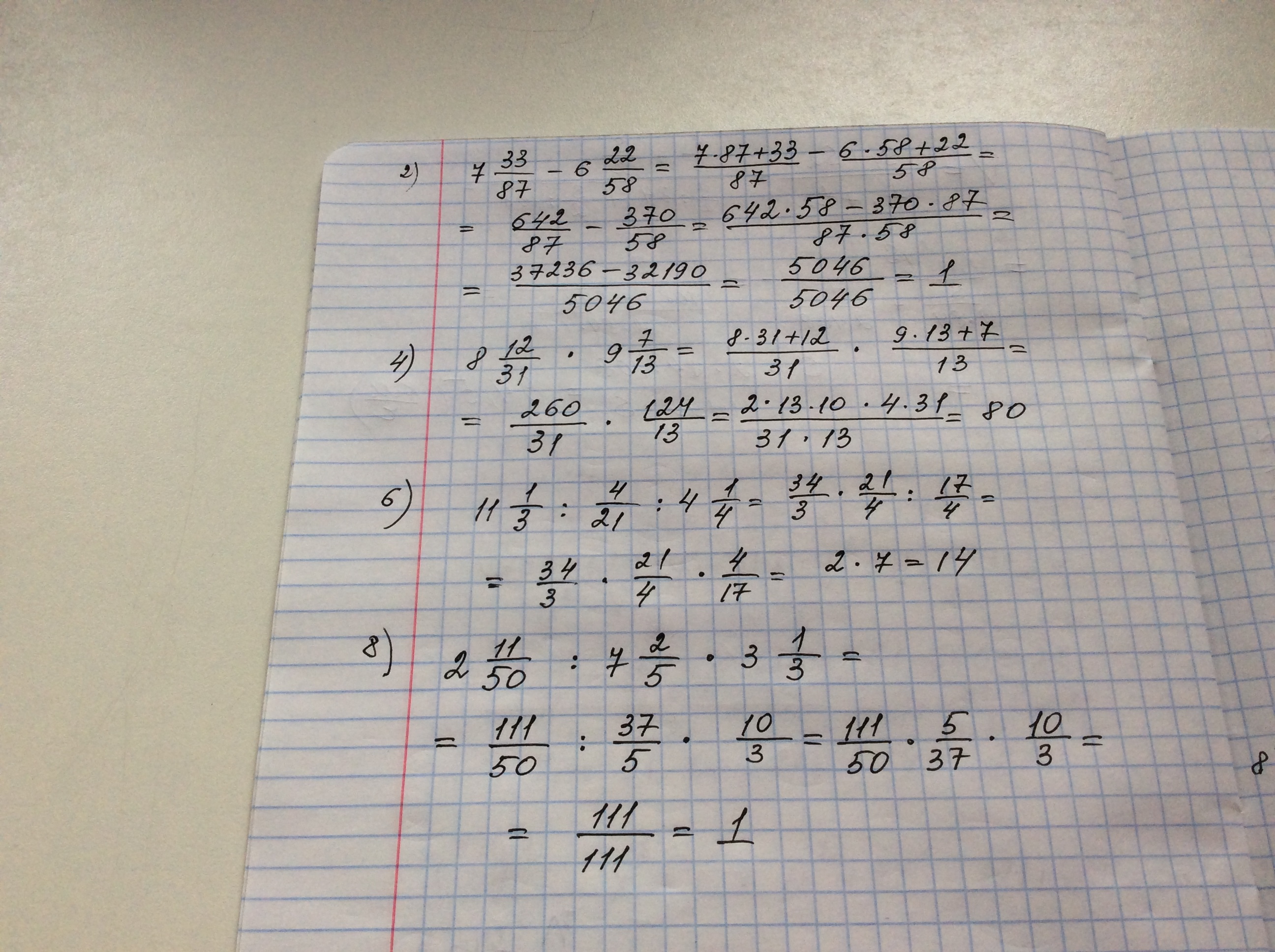 Вычислите 2)7 33/87-6 22/58 4)8 12/31 * 9 7/13 6)11 1/3:4/21:4 1/4 8)2 11/50:7 2/5*3 1/3 (расписать) пожалуйста