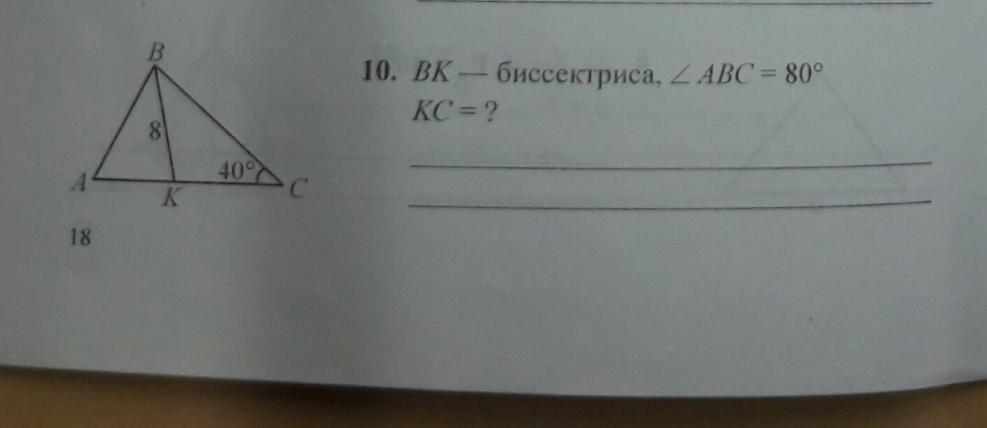т.к. ВК - биссектриса, то угол СВК = 80/2=40гр