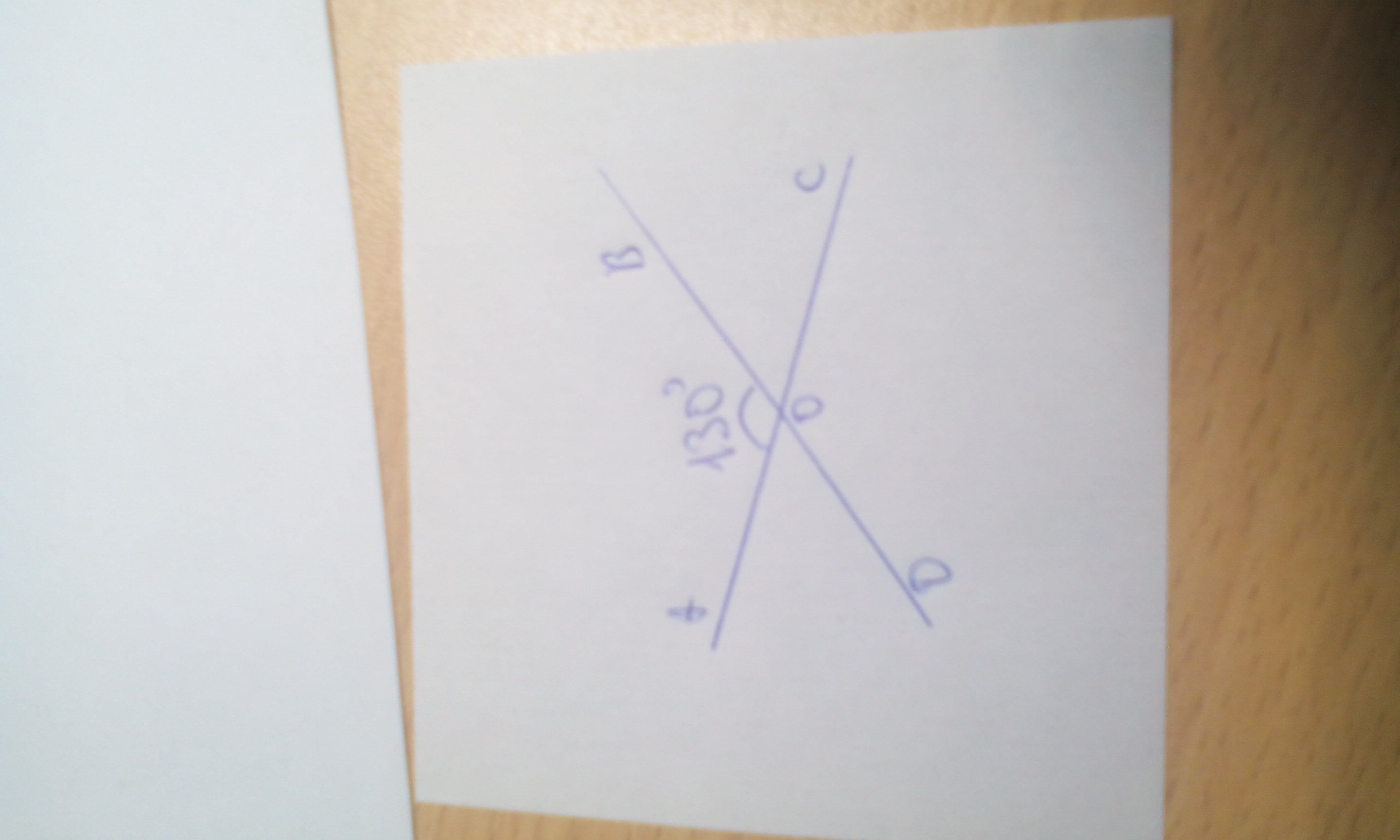 Пусть АОВ=130° значит и DOC=130°(Вертикальные)