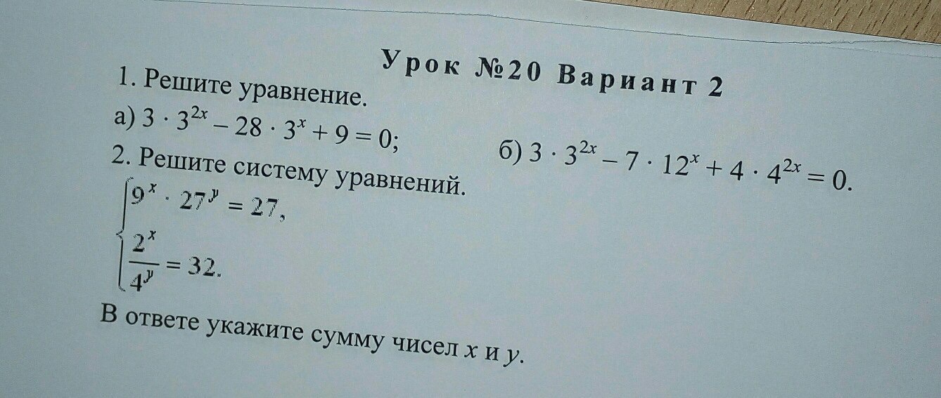 32ˣ·2^y=16; 2⁵ˣ·2^y=2⁴; 2⁵ˣ⁺^y=2⁴; 5x+y=4; подставляем х из первого равенства 5(3+2y)+y=4; 15+10y+y=4; 11y=-11; y=-1;