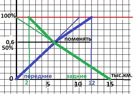 5) 0,4*15= 6 тыс.км - для задник колес.