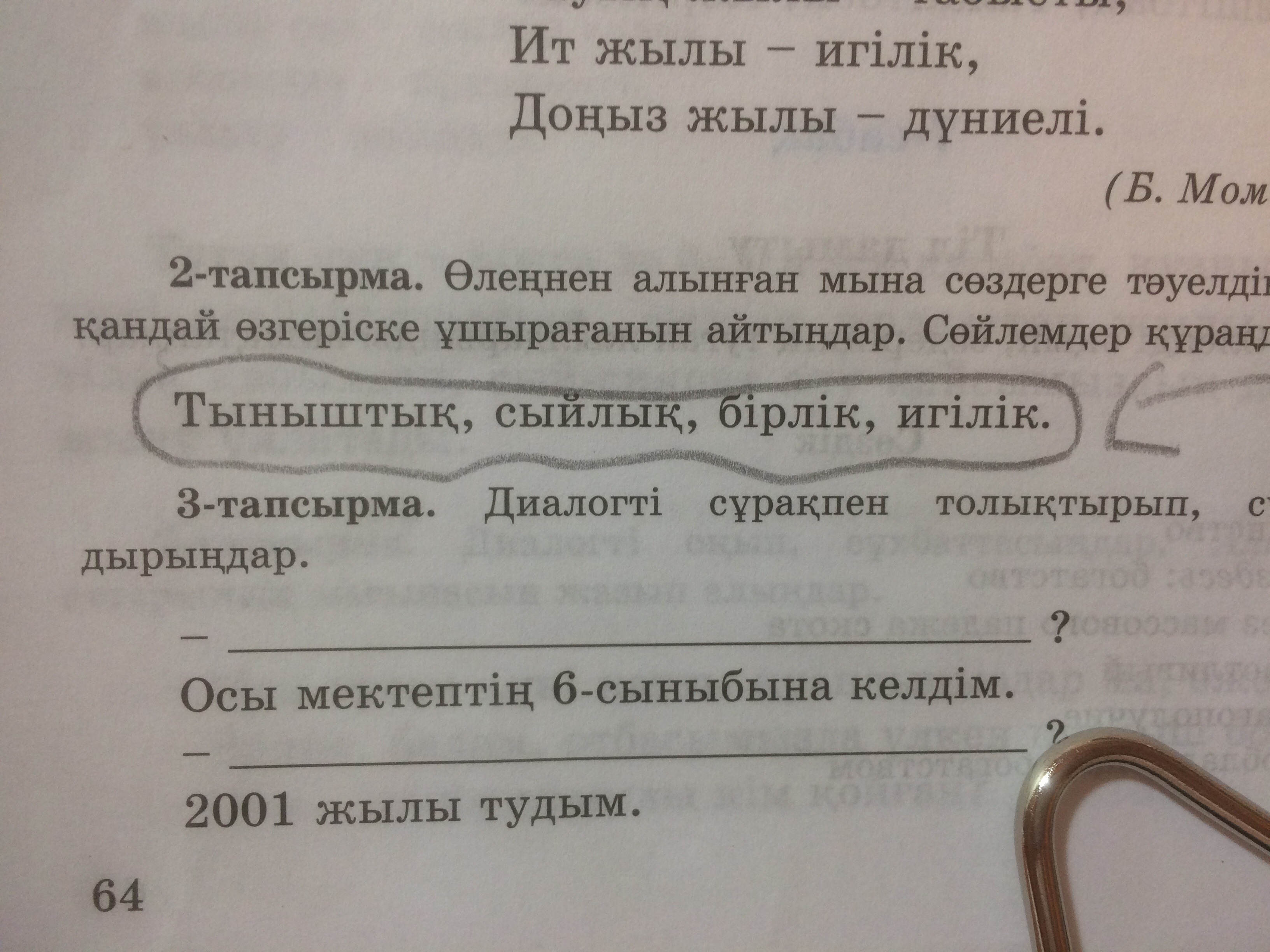 Просклонять слова:тыныштык сыйлык бирлик игилик