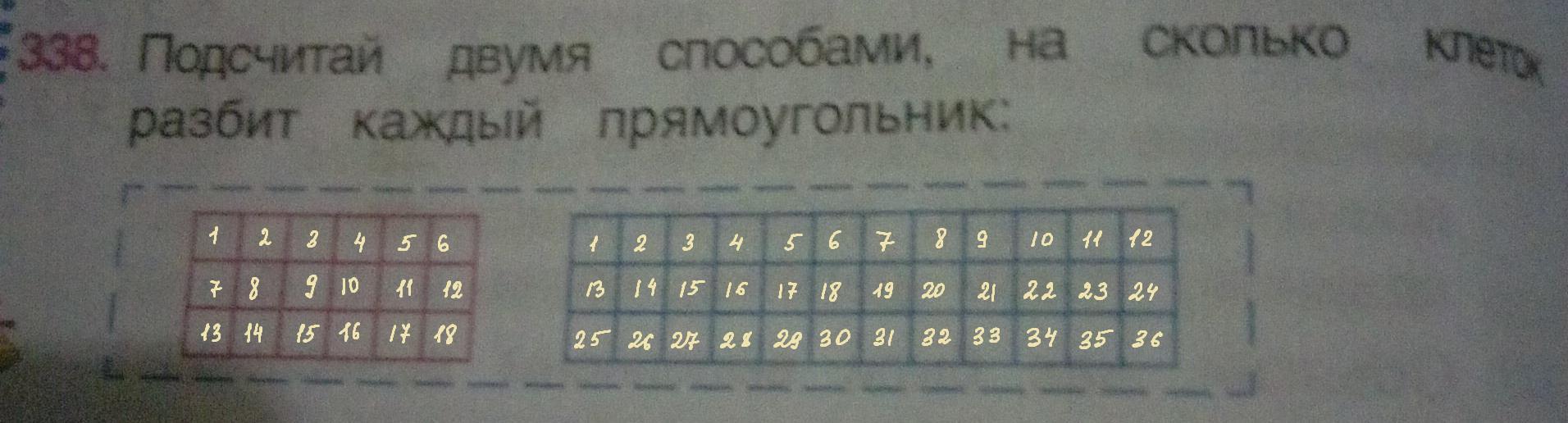В синем прямоугольнике тоже считаем количество клеток по ширине и длине. Получаем 3 и 12.