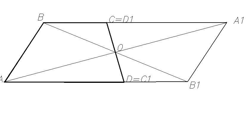 Дана трапеция ABCD. постройте фигуру , на которую отображается эта трапеция при симметрии относительно точки, являющейся серединой боковой стороны CD.
