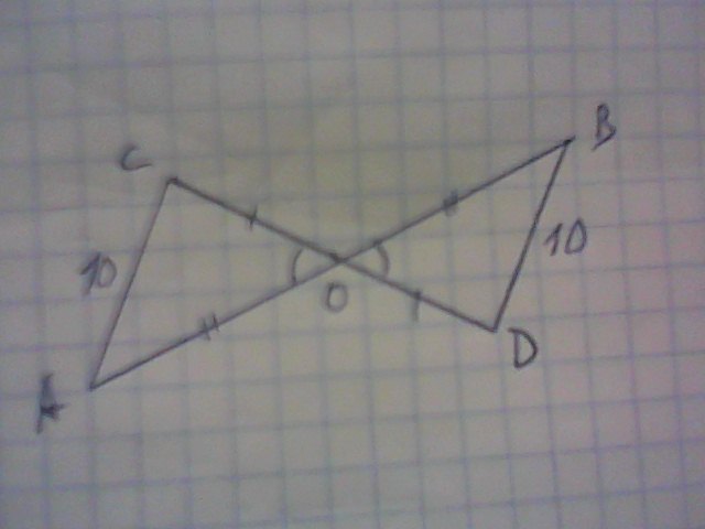 ΔАОС=ΔВОD по двум сторонам и углу между ними: АО=ВО, СО=DО,