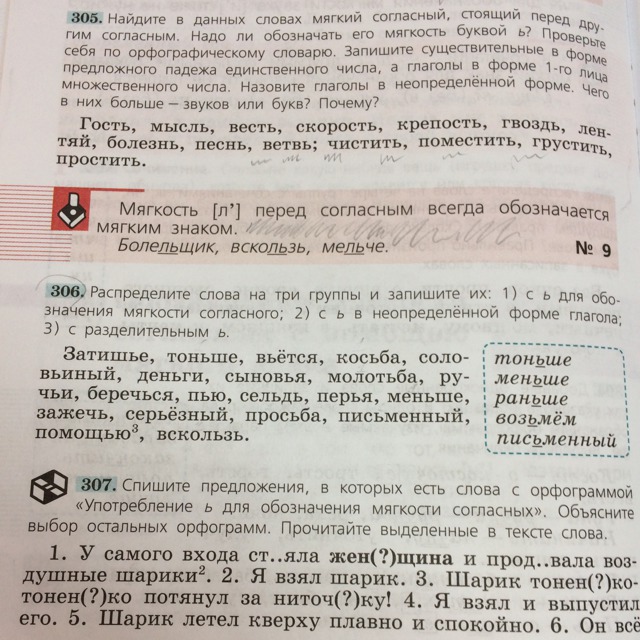 1 тоньше,косьба,деньги,молотьба,сельдь,меньше,просьба,письменный,вскользь.