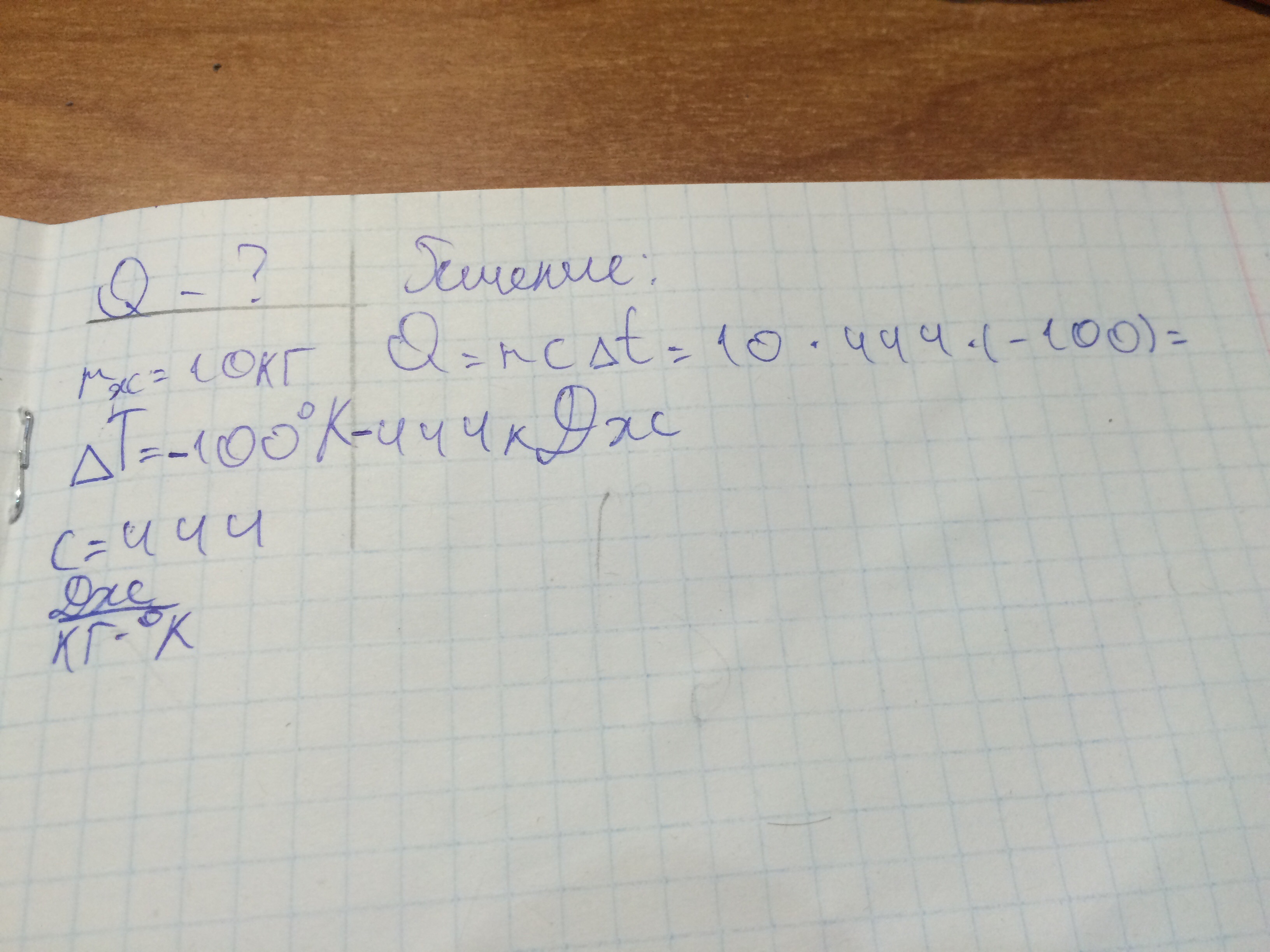Определите количество теплоты , которое отдаст железная болванка массой 10 кг при понижении ее температуры дельтаT100К