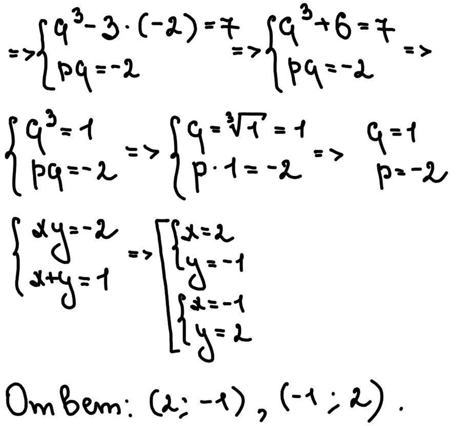 Ответ: (2; -1), (-1; 2). (Решение на рисунках)