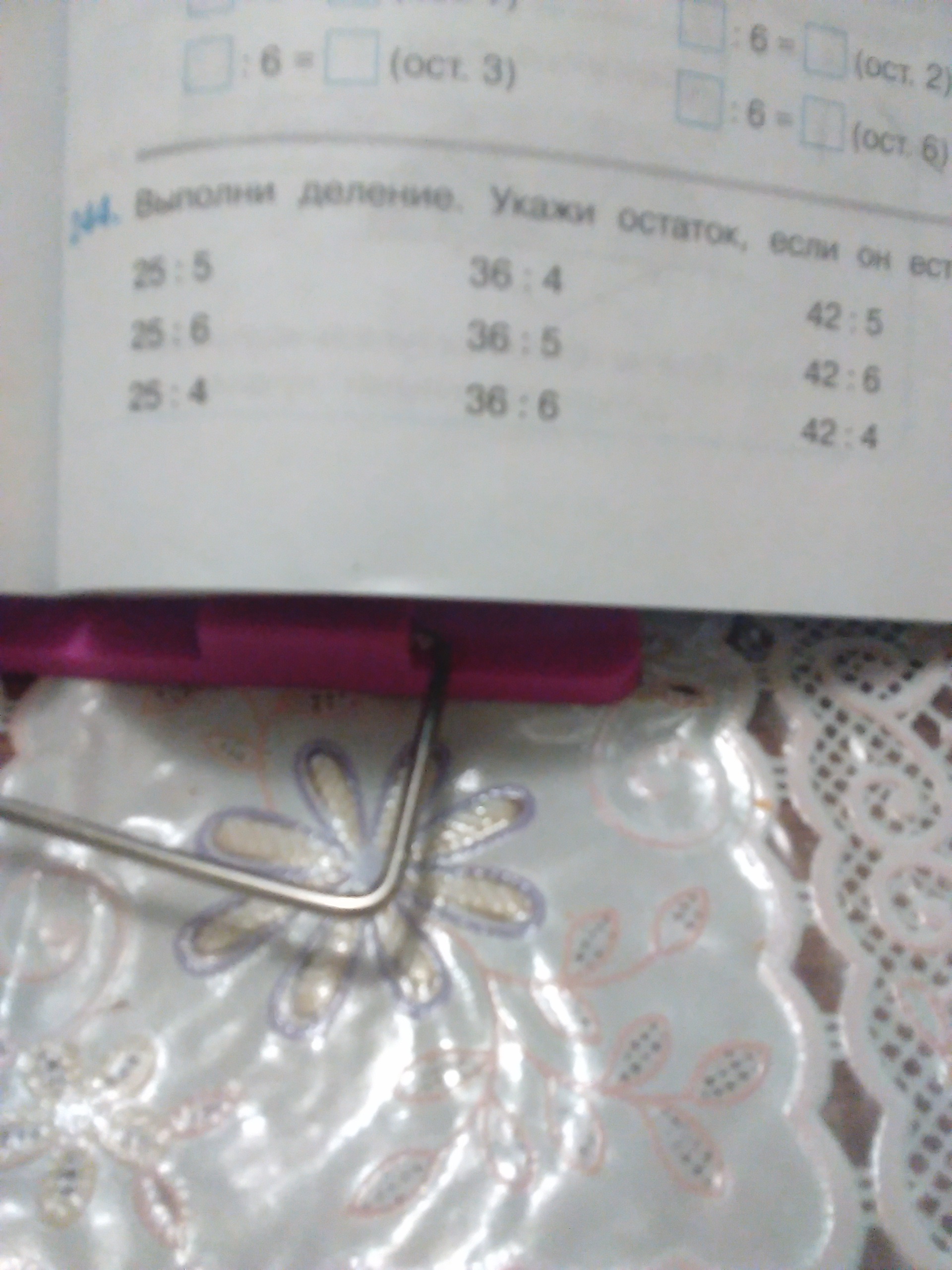 25:5=5. 25:6=4,16. 25:4=6,25. 36:4=9. 36:5=7,2. 36:6=6. 42:5=8,4. 42:6=7. 42:4=10,5