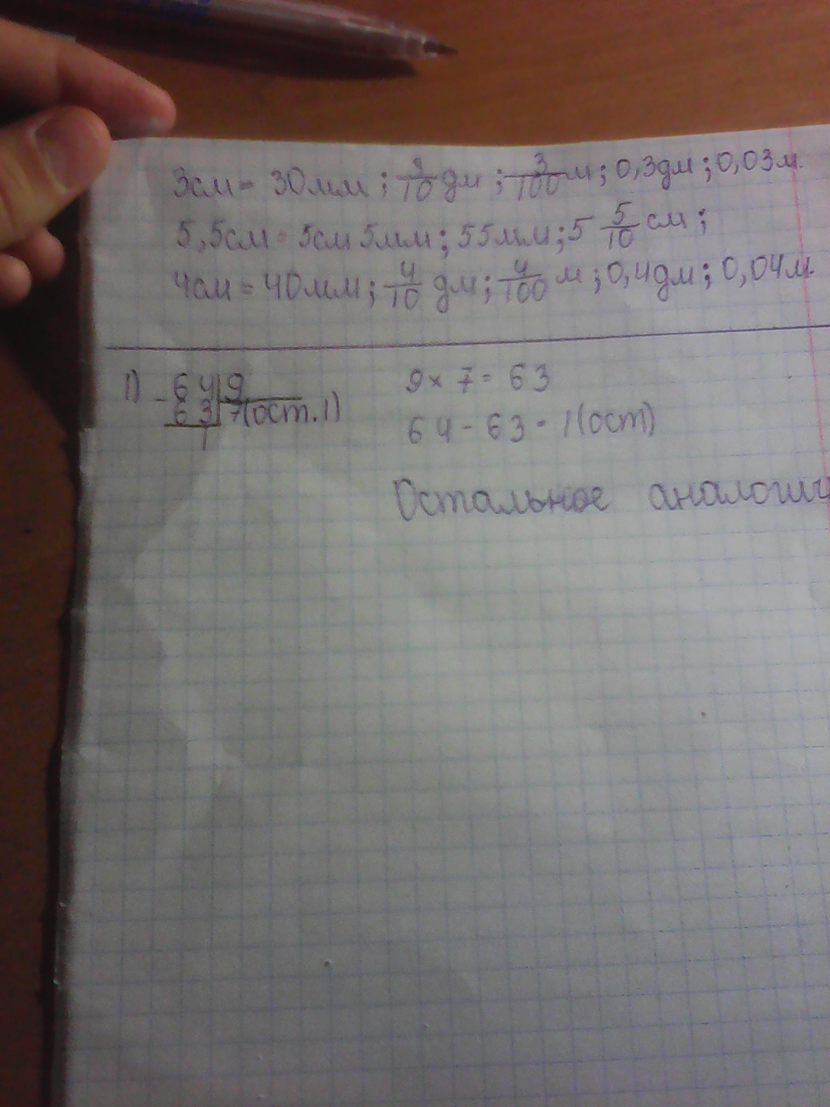 64:9 = 7 и остаток 1. 65;9= 7 остаток 2