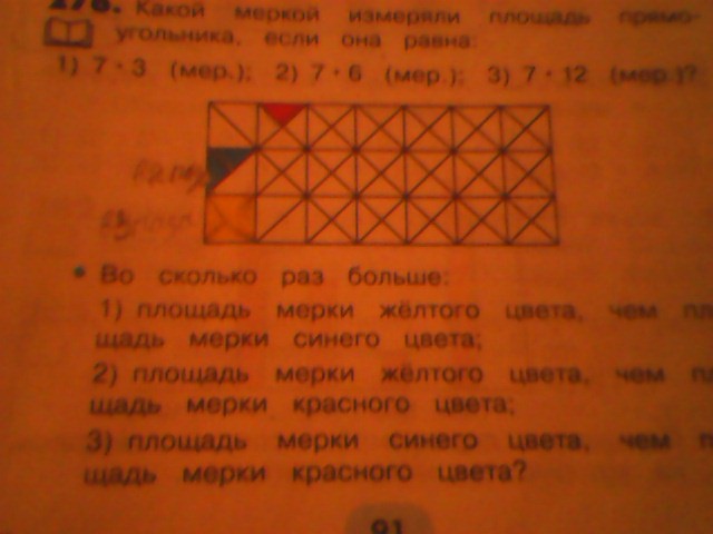 Там смотри желтый закрашен весь а красный только одна четвертая часть и там на рисунке видно что желтый один квадрат а где красный там этот квадрат разбит на 4 треугольника