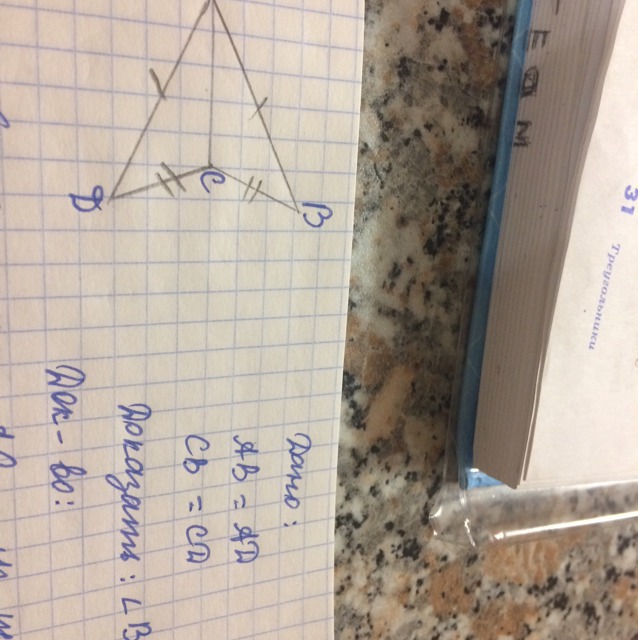 Треугольник ABC=Треугольнику ADC по трем сторонам. Значит, угол В=углуД
