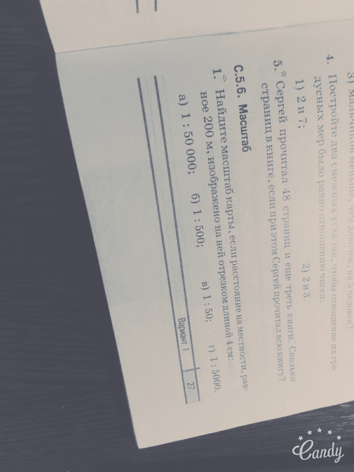 нет, ответ Г 1:5000. сначала нужно перевести к одной единице -см, а 200 -это в метрах...