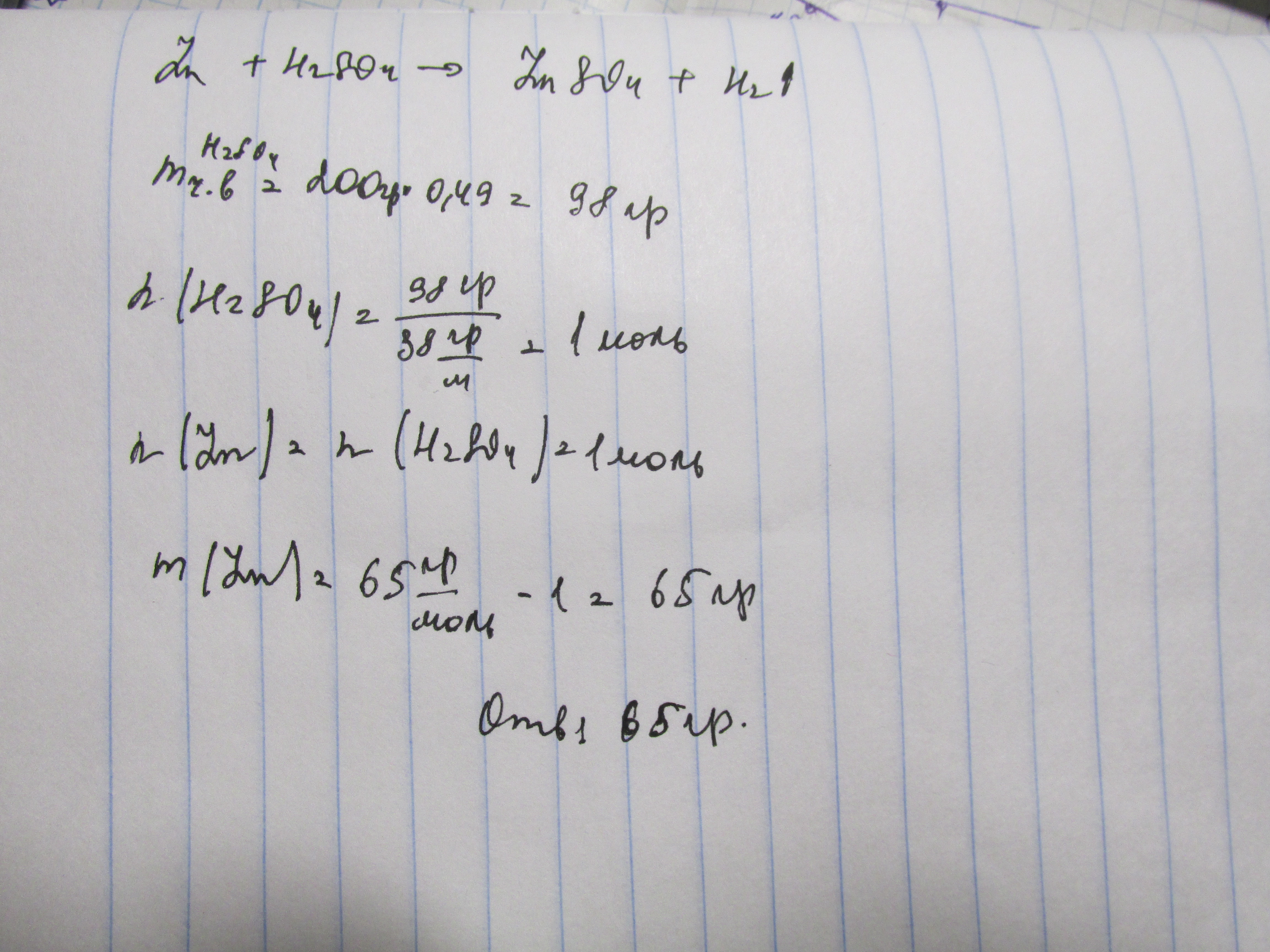 n(H2SO4)=m/M=98г/98г/моль=1моль=n(Zn)