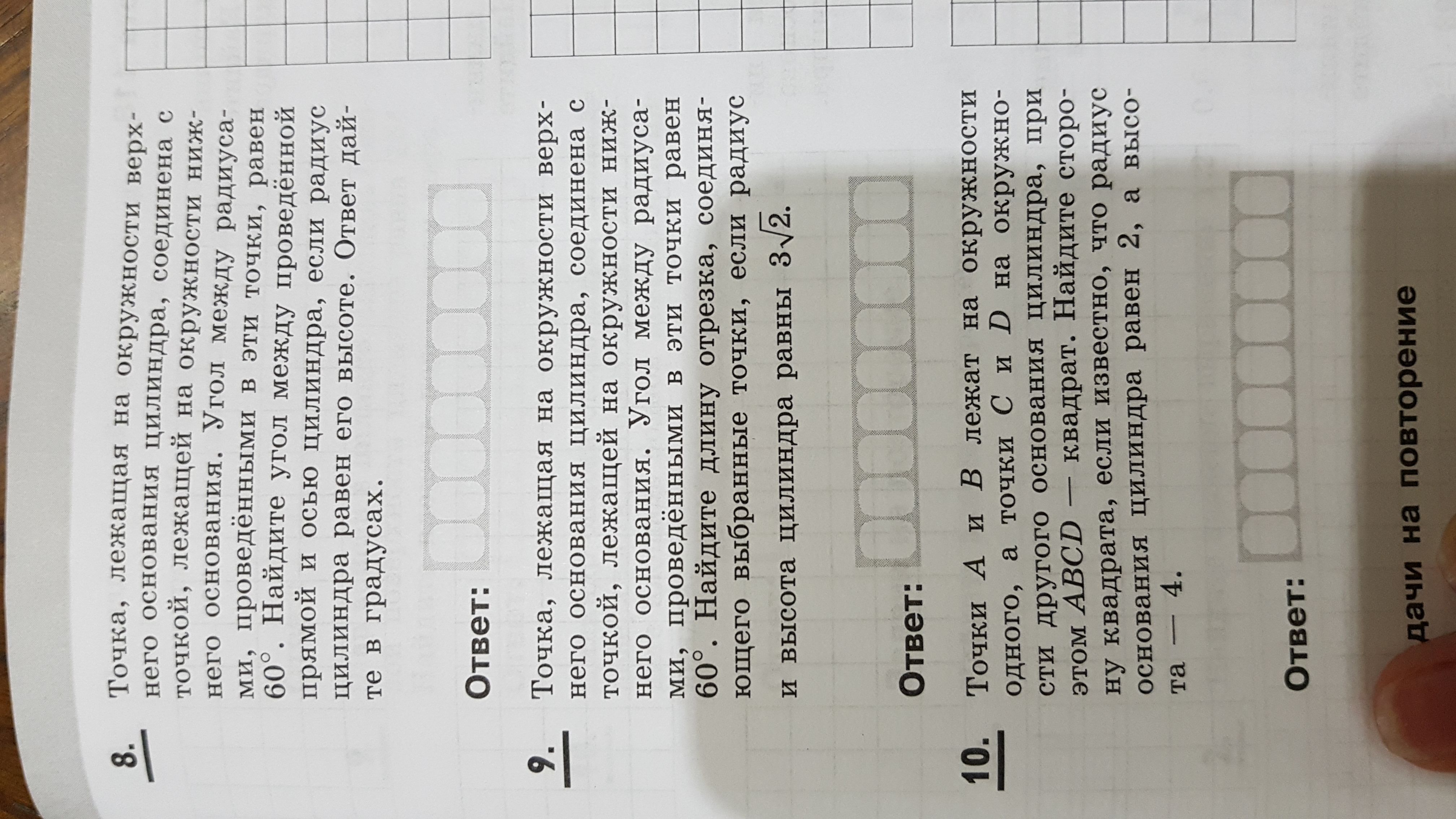 8) Проведенная прямая лежит в плоскости, параллельной оси цилиндра и является диагональю квадрата в этой плоскости.