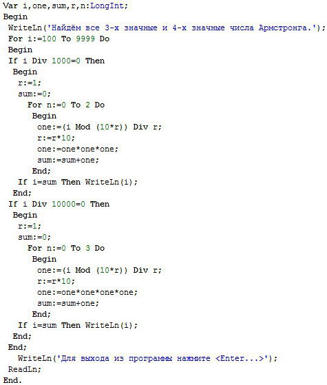 Натуральные числа из N цифр, являются числами Армстронга, если сумма его цифр, возведенных в N-ую степень, равна самому числу (например: 153=1^3+5^3+3^3). Получить все числа Армстронга, содержащие не более четырех цифр.