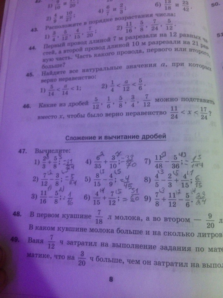 Единственное, что можно тут поправить: это в первом примере, шестом и восьмом. В первом можно выделить целую часть: 31/24 = одна целая 7/24 (смешанная дробь). В шестом можно сократить на 3: 51/60 = 17/20. В восьмом можно сократить на 3: 6/15 = 2/5.