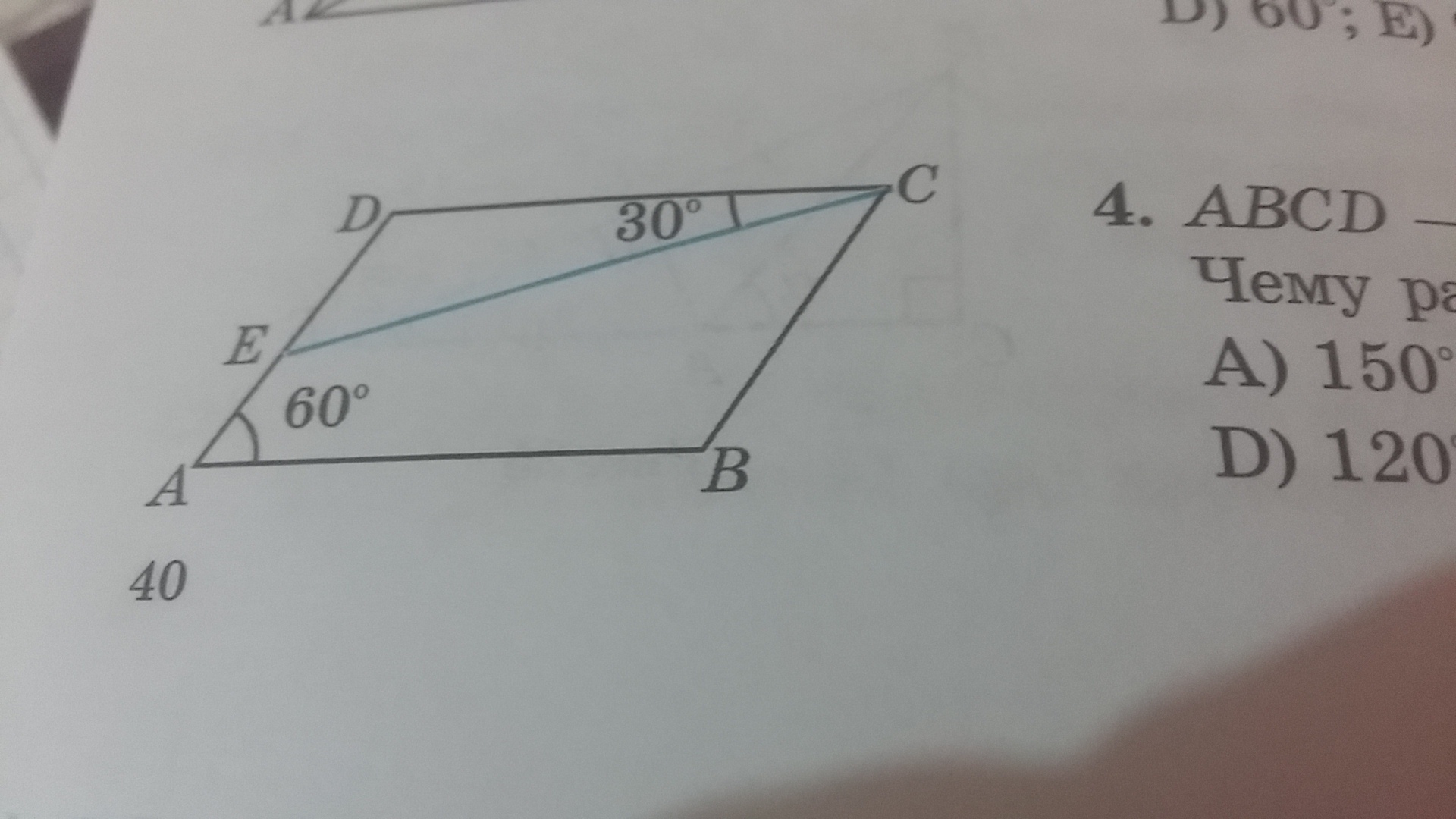 3. ∠AEC = 180° – ∠DEC = 180° – 30° = 150° (как смежные углы)