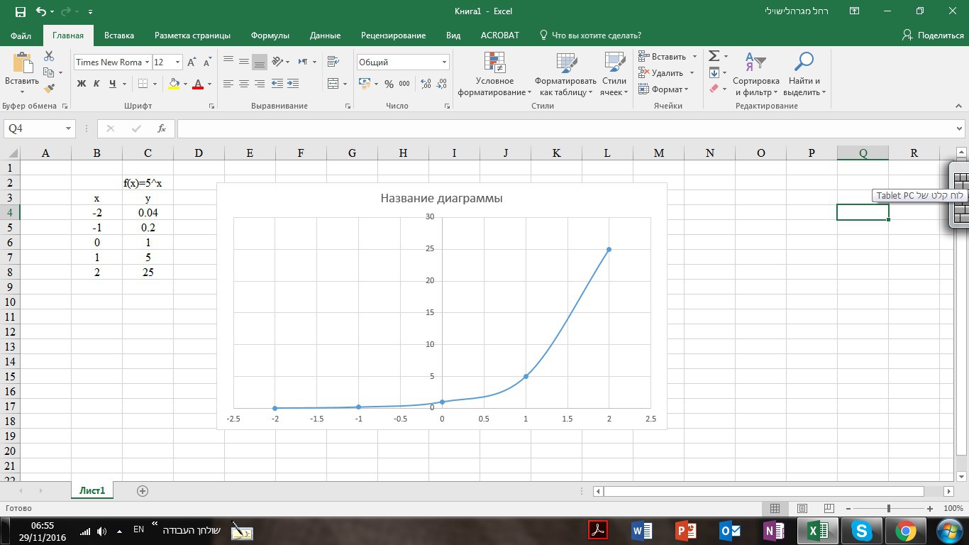 Постройте график функции y=5^x. Как изменяется y, когда х возрастает от-2 до 2? Помогите пожалуйста