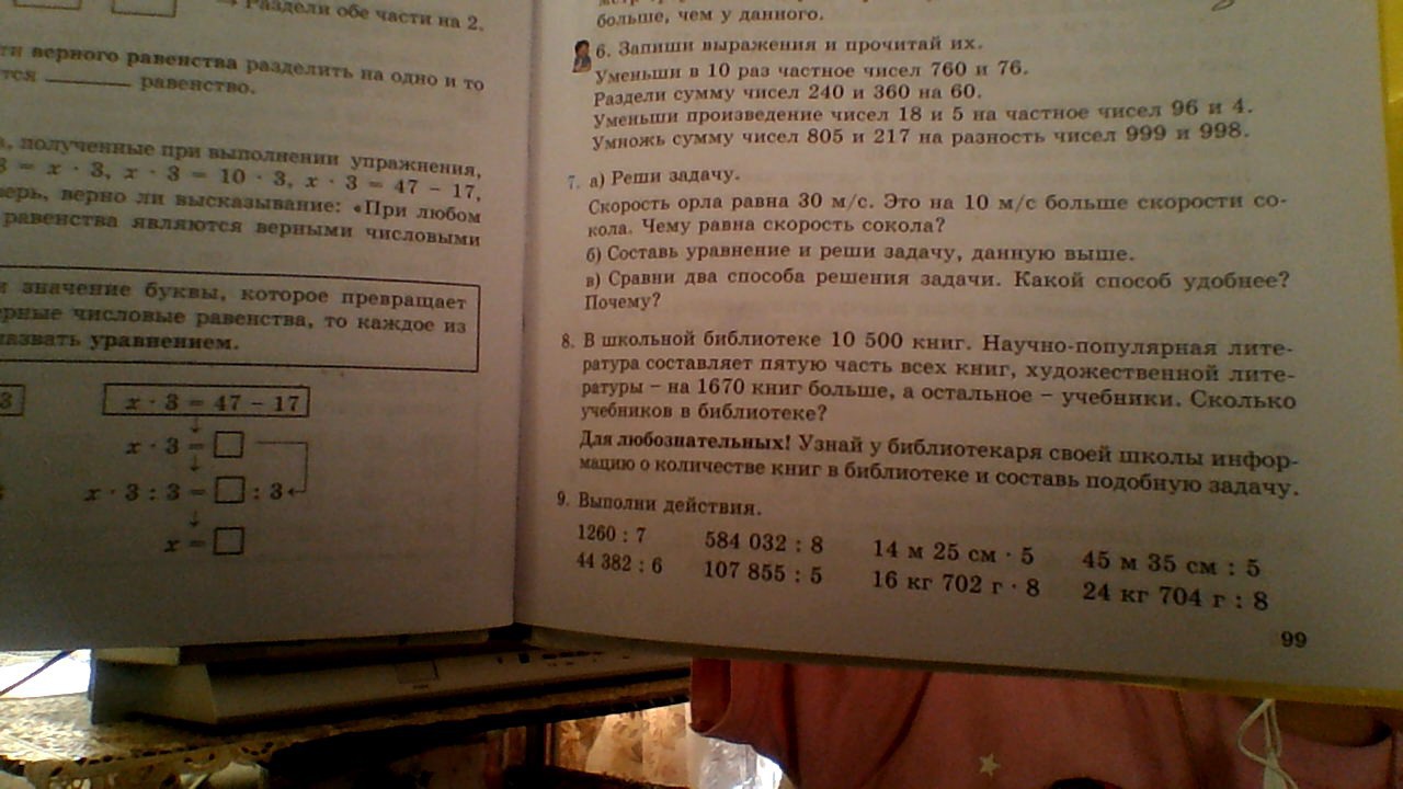 1260÷7=180 584032÷8=73004 1425см×5=7125см 4585см÷5=917см