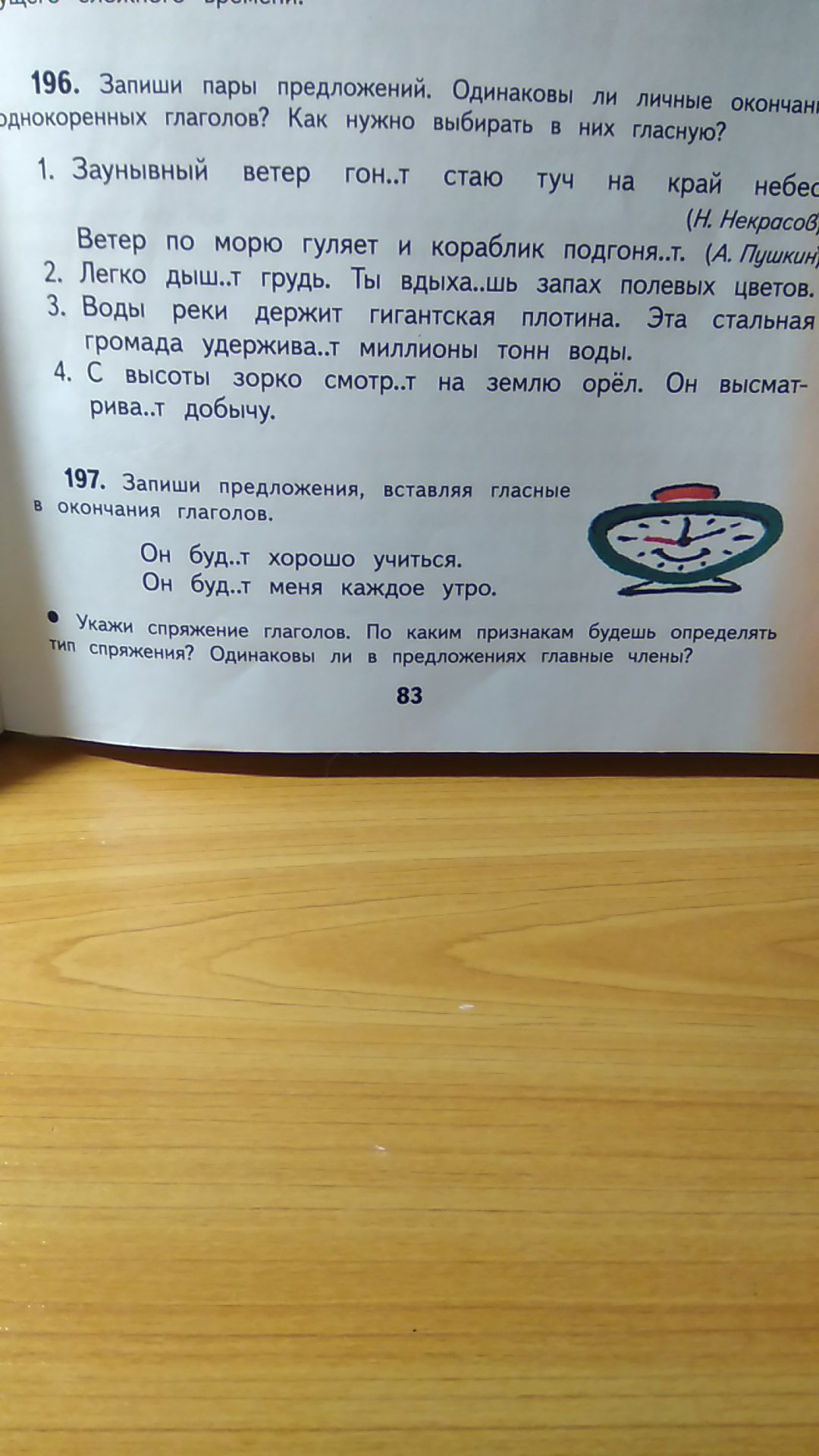 Он будет хорошо учиться 1 спряжение. Он будит меня каждое утро 2 спряжение