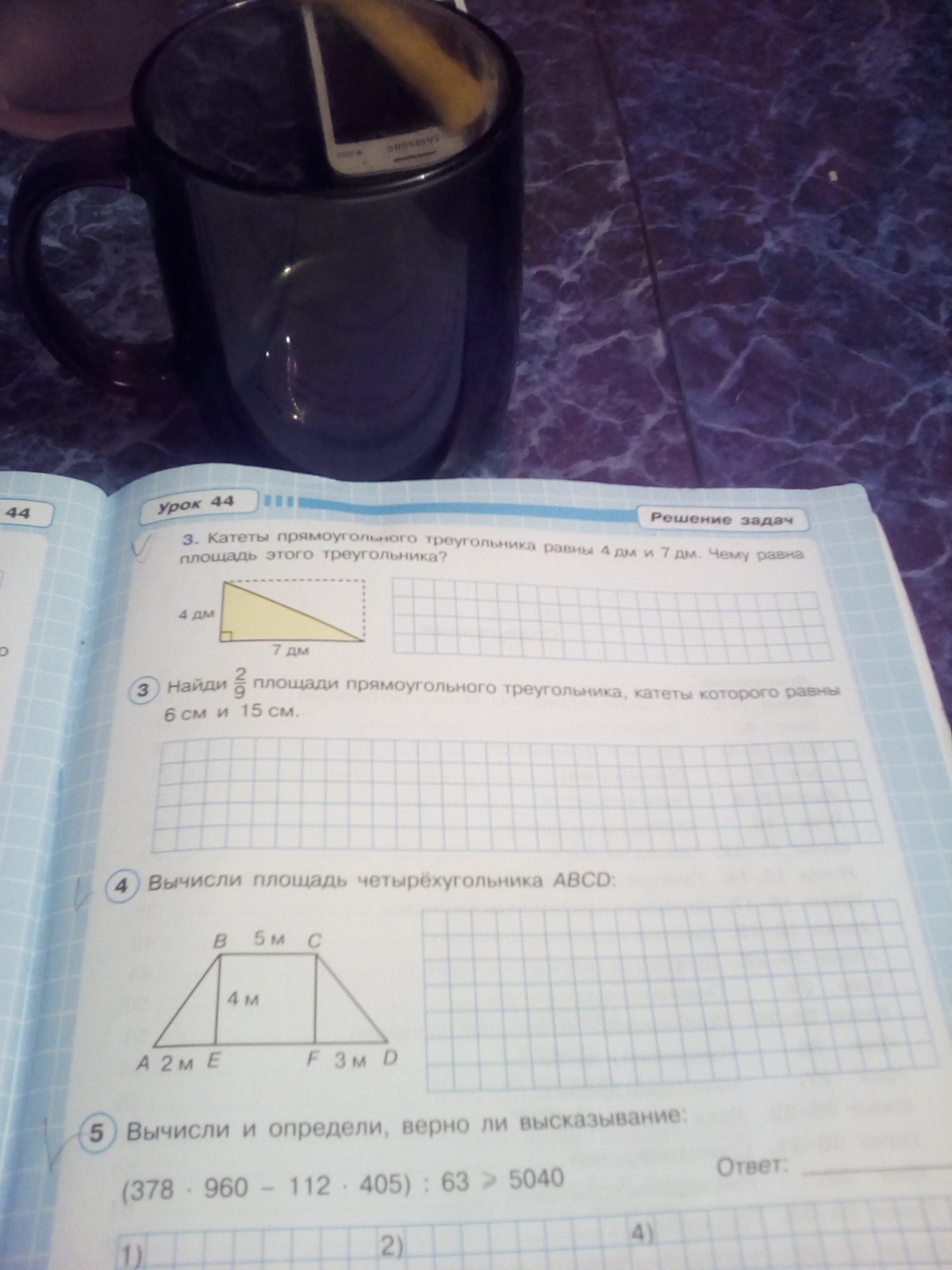 Что бы найти площадь прямоугольного треугольника нужно катет умножить на катет и разделить на 2.