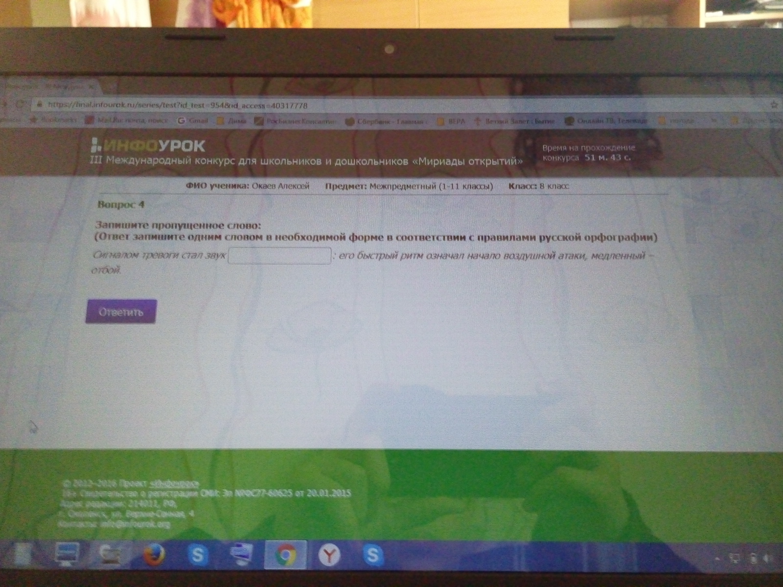сигналом тревоги стал звук_____:его быстрый ритм означал начало воздушной атаки, медленный отбой.