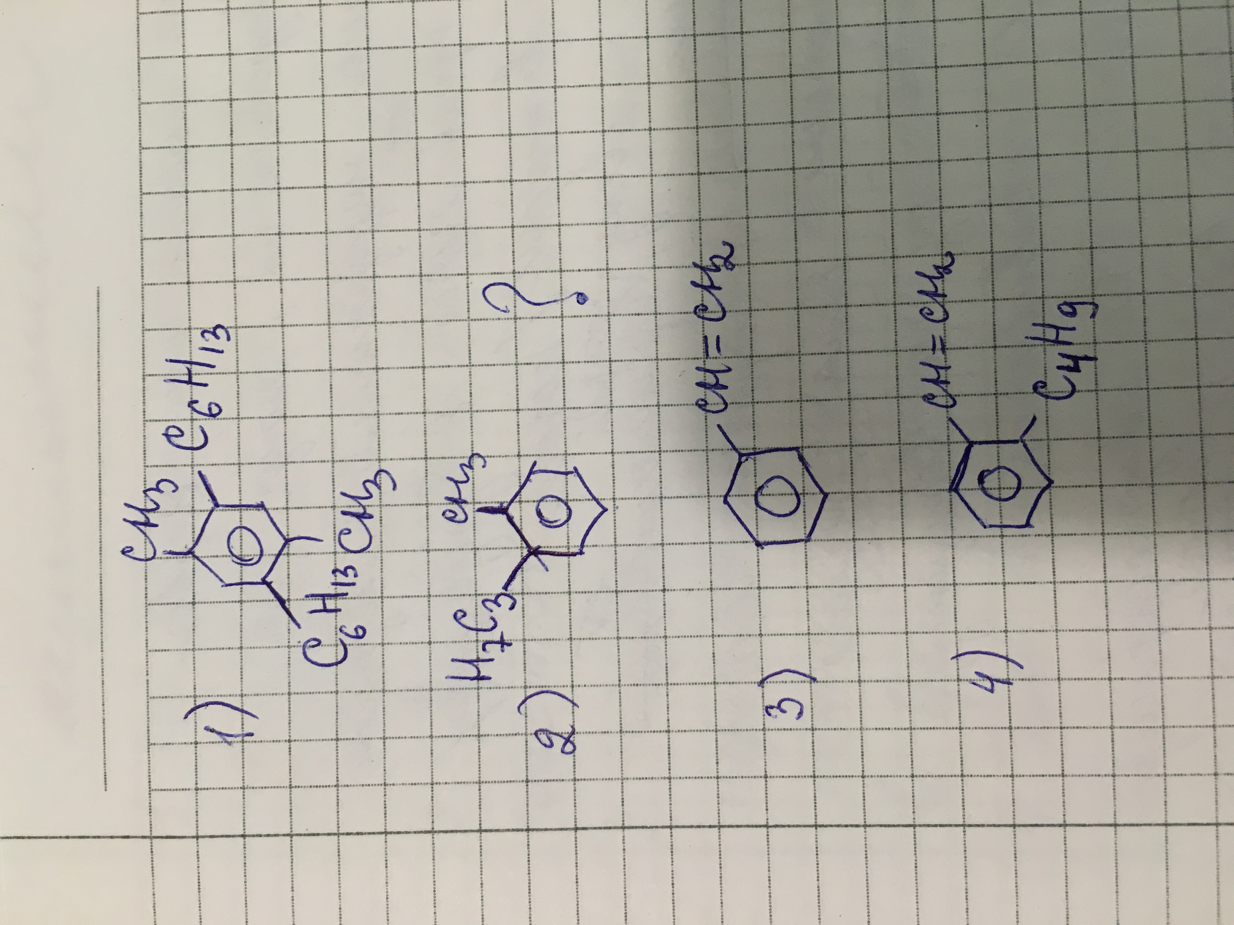 2,5-дипексил-пара-ксилол. 6-пропилталуол. стирол. 2-бутилстирол. помогите кто может спасибо заранее