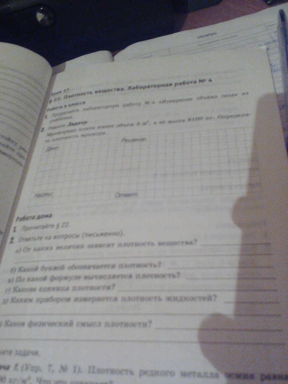 Мраморная плита имеет объём 3 м³, а её масса 8100 кг. Определите плотность мрамора!
