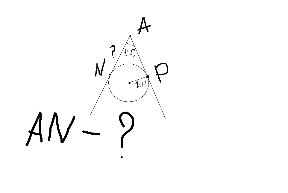 Проведем из центра окружности к вершине А отрезок . Он разделит пополам этот угол. NP=9cм, т.к. это тоже радиус и перпендикуляр к АN. Центр обозначим т.О, получим: