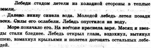 Леб..ди стадом л..тели из х..лодной ст..р..ны в тёплые земли д..л..ко внизу синела в..да м..л..доой леб..дь л..тел поз..ди всех силы его ослабели леб..дь опустился на воду море пок..чало его на в..стоке кр..снела з..ря мес..ц и звёзды стали бл..днее л..бедь открыл гл..за,взд..хнул, выт..нул шею, взм..хнул крыл..ями и ... .