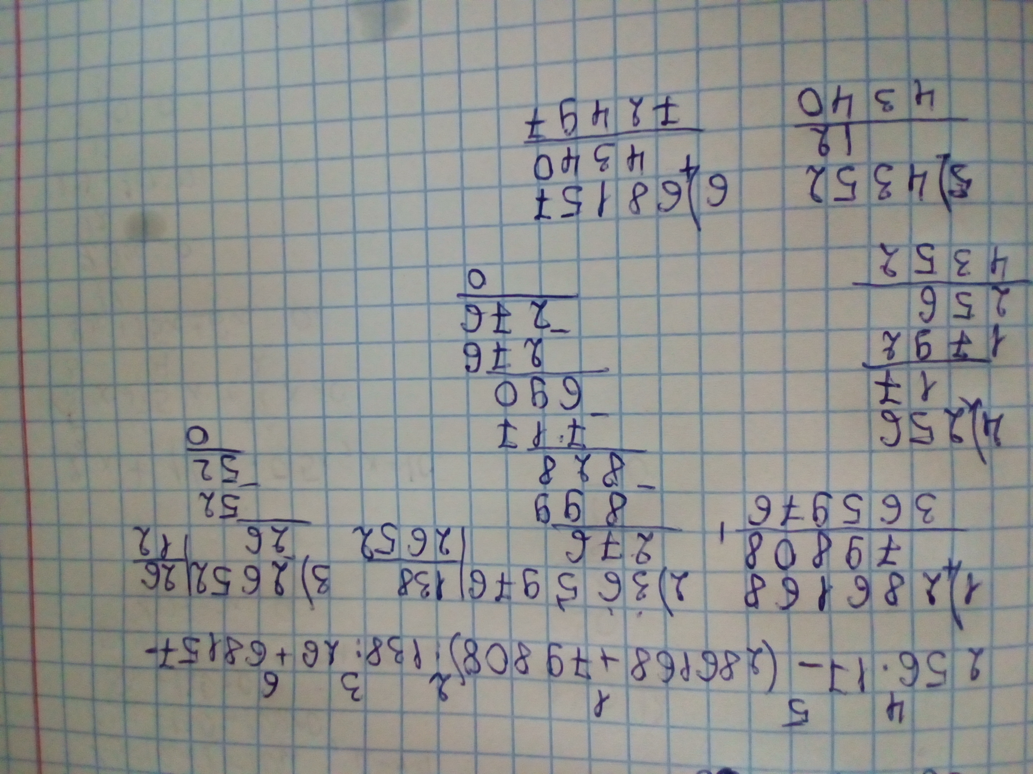 Помогите пожалуйста!!! Решите пример по действиям (можете отправить фотографию как решили)!!! Заранее спасибо !! 256*17-(286168+79808):138:26+68157=?
