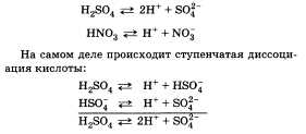 Многоосновные кислотны диссоциируют ступенчато(примерами многоосновных кислот могут служить серная и фосфорная кислоты)