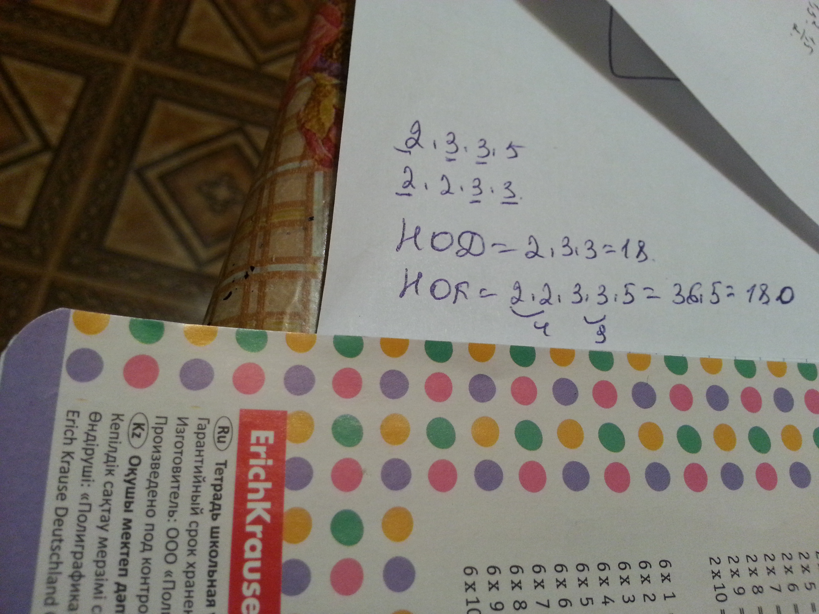 найдите нод и нок данных чисел 2*3*3*5 2*2*3*3