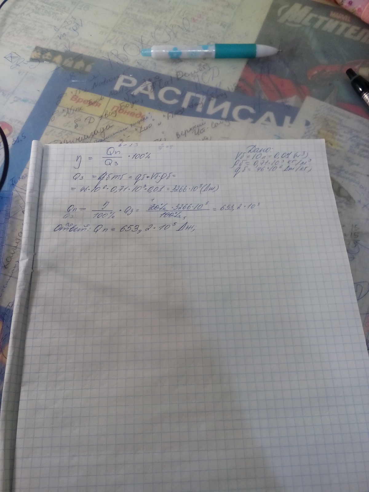 Тепловой двигатель кпд которого равно 20%,израсходовал 10 л бензина.Какую полезную работу выполнил двигатель?
