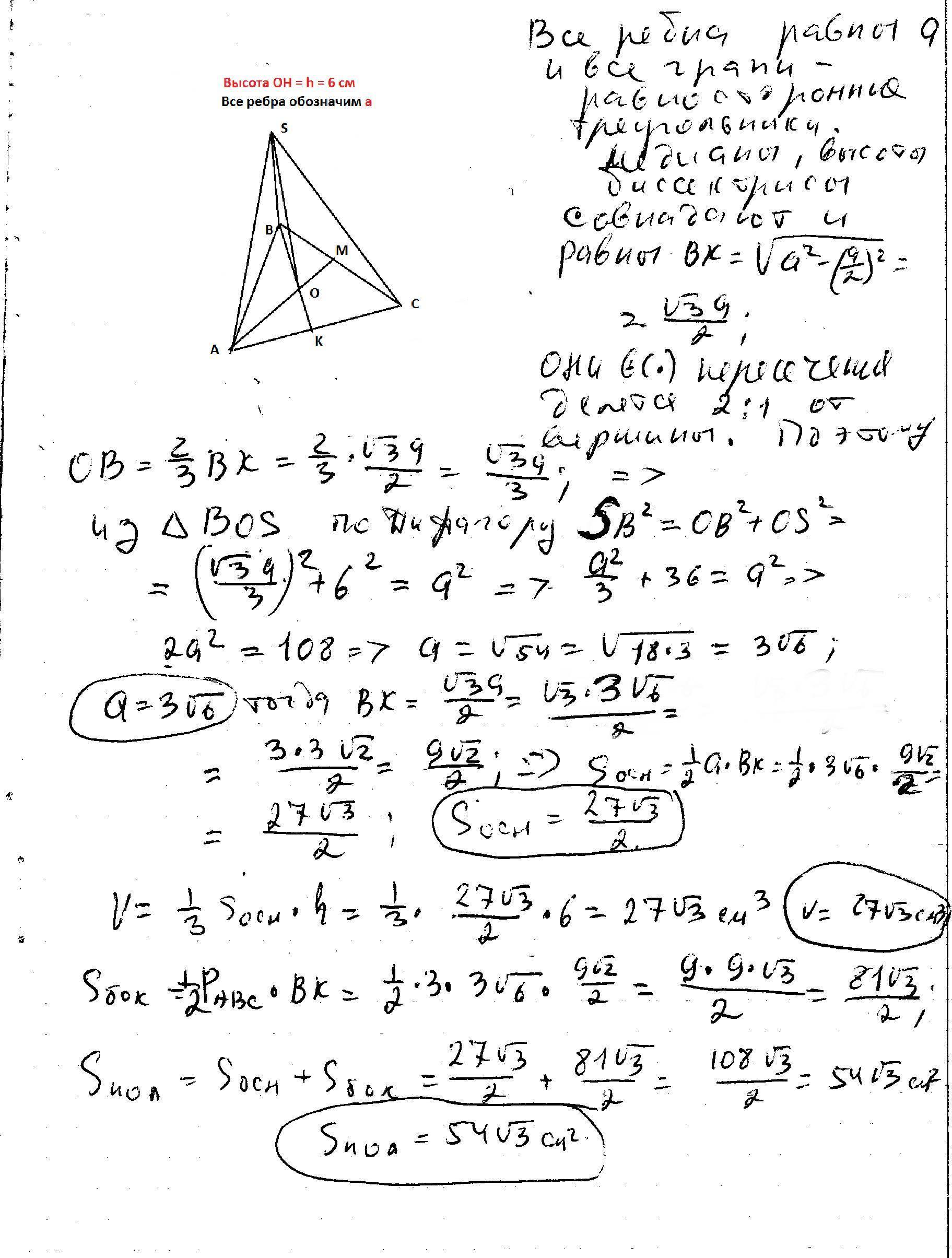 Высота правильного тетраэдра равна 6см. Найти ребро тетраэдра