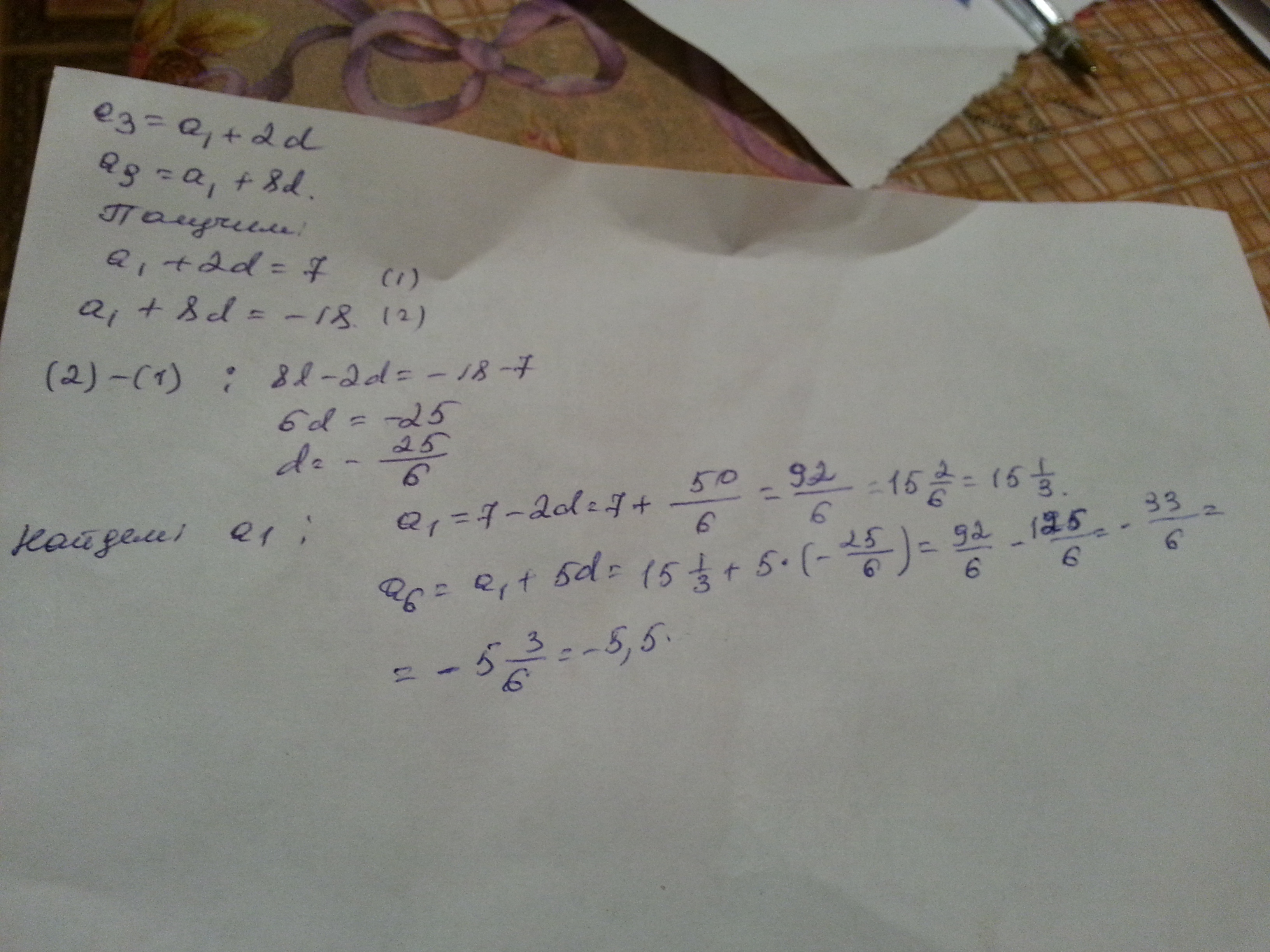 Третий член арифметической прогрессии равен 7, а 9ый член --18,.. найдите 1ый и 6ой член арифметической прогрессии...