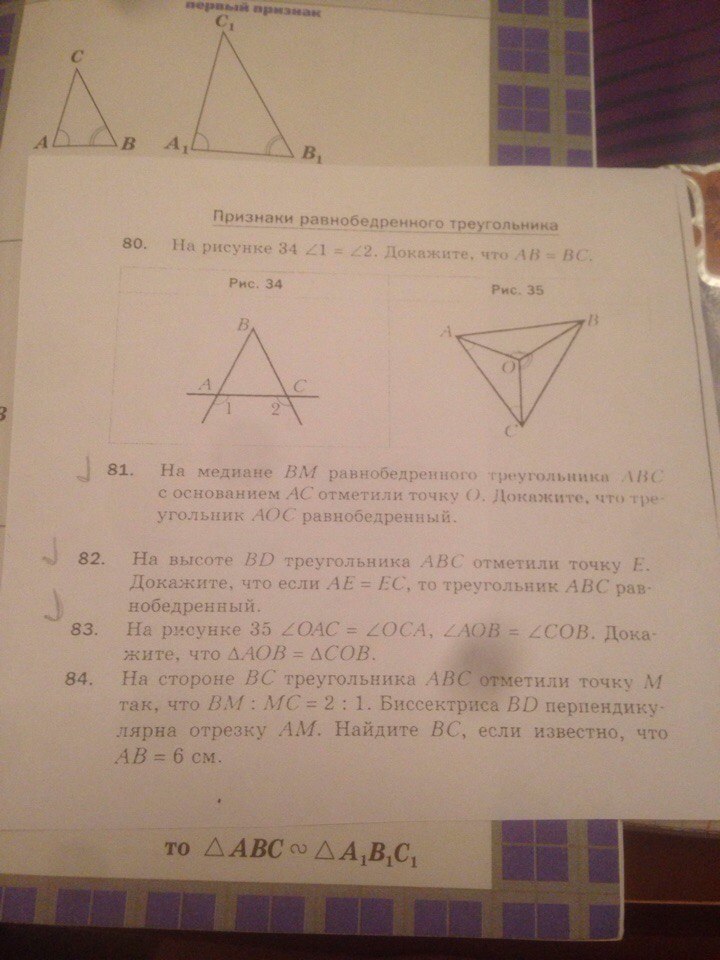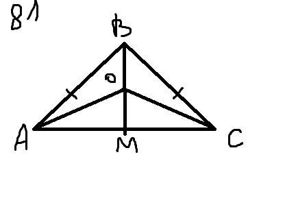 АМ=МС, тк ВМ-медиана. ОМ-общая сторона. Треугольники АОМ и СОМ равны по двум равным сторонам и углу между ними. В равных треугольниках все стороны и углы равны. Значит, в треугольнике АОС углы при основании и боковые стороны равны. Следовательно, тругольник АОС - равнобедренный по определению